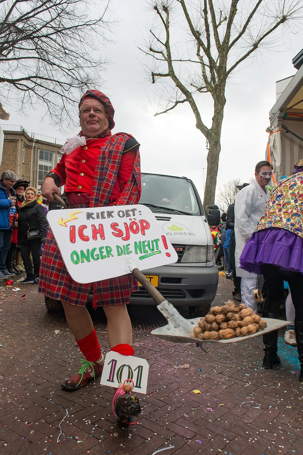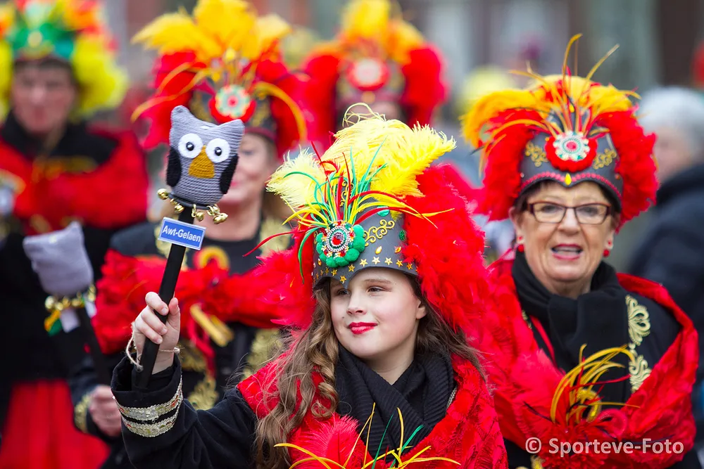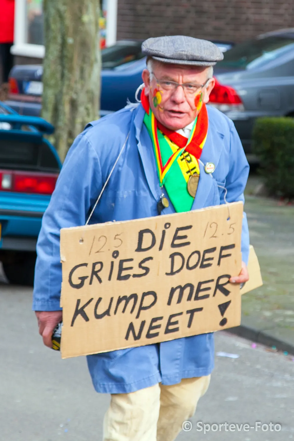 Veel mooi verkleden en prachtig geschmikte gezichten van jong tot oud liepen de optochtroute. Daarbij werden veel zaken op een ludieke manier 'oppe sjöp' genomen, soms letterlijk. En natuurlijk ontbrak was en zo nu en dan ook een sneer naar 'die van Zitterd', net zoals dat in de Sittardse optocht omgekeerd ook het geval was richting 'die van Gelaen'. Het publiek genoot in elk geval van de kolder en de 'sjaele zeiver', want daar kunnen ze met Vastelaovend wat van in de Waereldsjtad!