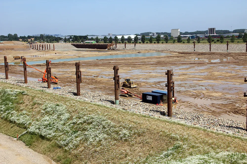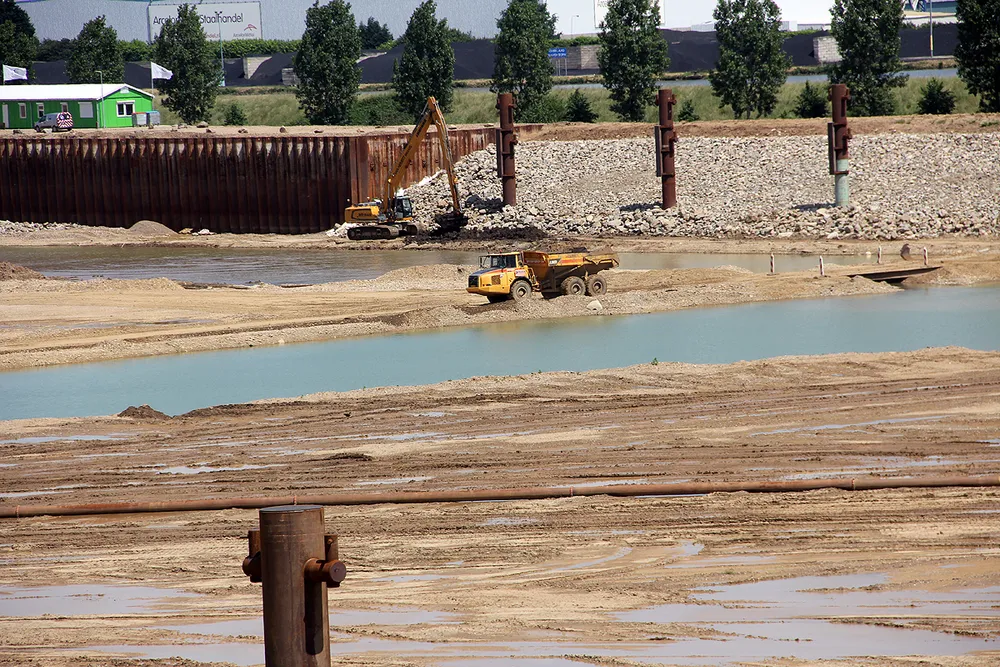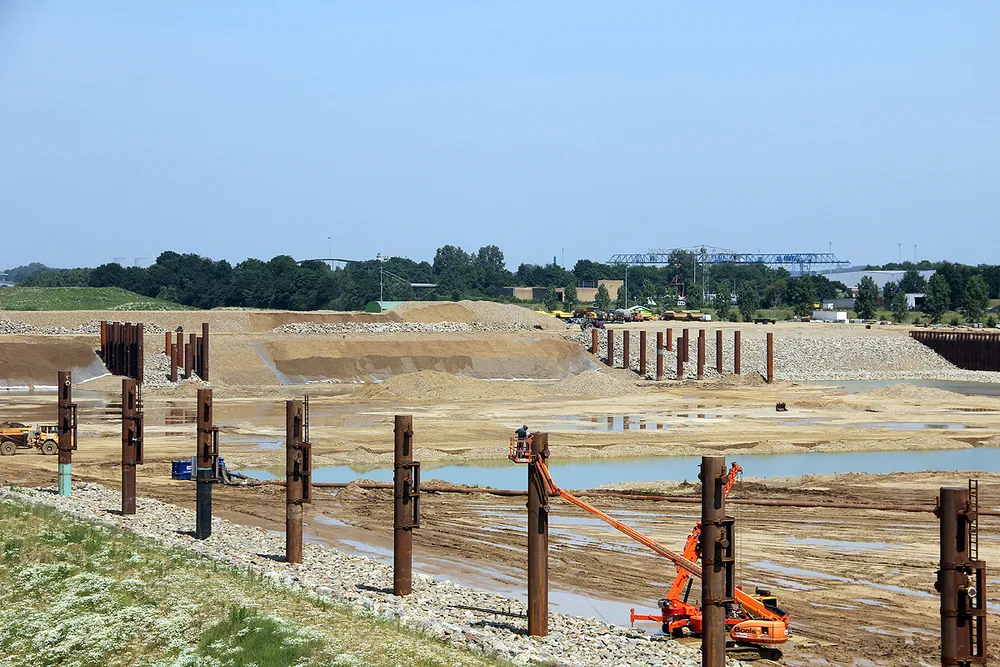 De voorbereiding van de aansluiting van de werkhaven op het Julianakanaal is al ver gevorderd. Zo ligt er al een brug over de toekomstige invaart van de werkhaven.