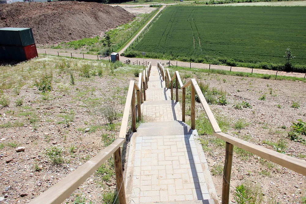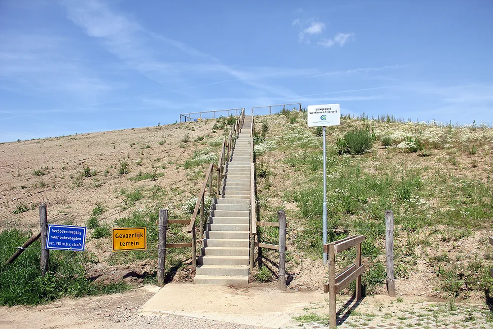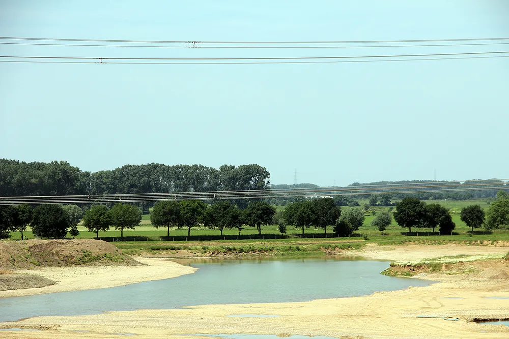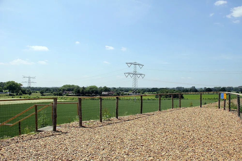 Vanaf het op een hoge dijk gevestigde uitkijkpunt krijgt men een mooi overzicht van de werkzaamheden in het gebied. Grote meerpalen staan momenteel letterlijk voor paal in een vlakte die over niet al te lange tijd onder water komt te staan.