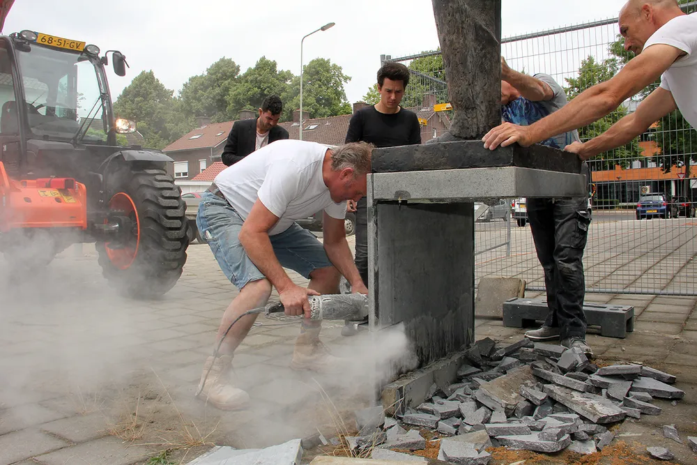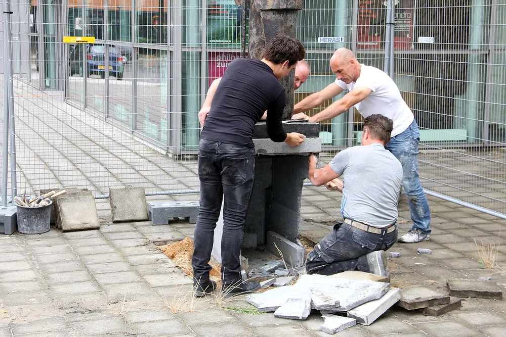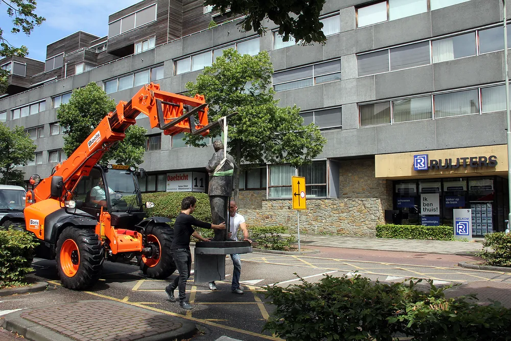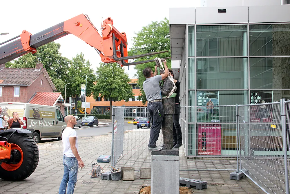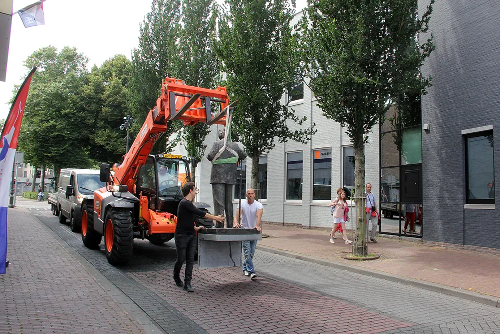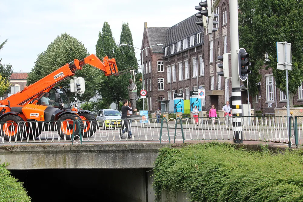 Een eerste poging om het bronzen beeld van zijn sokkel te lichten werd dinsdagmiddag ondernomen, maar mislukte omdat het beeld bijzonder stevig verankerd bleek aan de stenen sokkel. Daarom werd het bedrijf, dat het beeld in 2001 zo diefstal-proof op de sokkel had geplaatst, om raad gevraagd. Uiteindelijk werd besloten om de sokkel te slopen. Dat gebeurde vrijdagmiddag onder het toeziend oog van Gaby Hermans, waarna het 300 kilogram zware kunstwerk, hangend onder een heftruck, stapvoets van de Monseigneur Claessensstraat naar de Markt werd gereden.