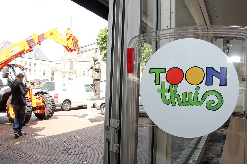 Het beeld, dat in 2001 werd onthuld door wijlen Jos Brink, verhuist naar de ingang van het voormalige pand van V&D op de Markt in Sittard, waar momenteel keihard wordt gewerkt aan de inrichting van de belevingsexpositie Toon Thuis. De expositie, die op 27 augustus officieel wordt geopend, belicht het leven van Toon vanaf zijn jeugd in Sittard tot en met het podium in Carré. Het is een eerbetoon aan deze grote Sittardse cabaretier, die op 17 december 2016 exact 100 jaar geleden in Sittard werd geboren. De opzet van de expositie is ronduit bijzonder te noemen, ook vanwege de in de expositie toegepaste technieken.