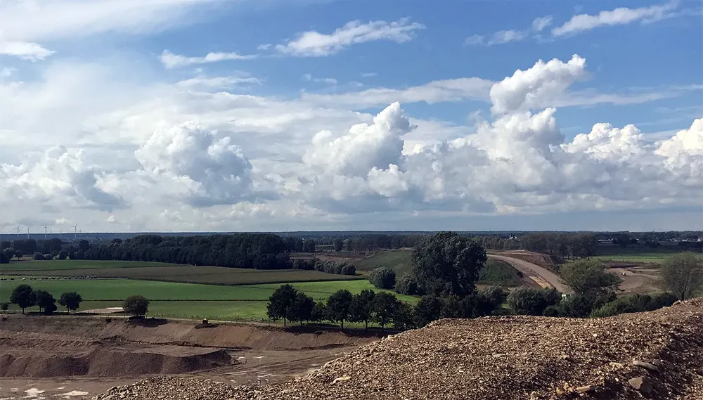Wat opvalt op het Trierveld tussen Illikhoven en Schipperskerk is de enorme grindpuist die er ligt en die op verwerking wacht door de twee grote installaties die in de speciaal daarvoor aangelegde werkhaven liggen. De grote transporttrucks, draglines en graafmachines steken er een beetje iel tegen af. Ze gaan verloren in het landschap wanneer je ze vanaf de top van het depot gadeslaat.