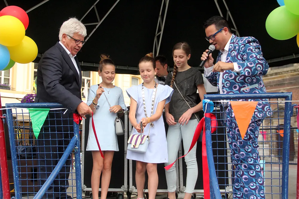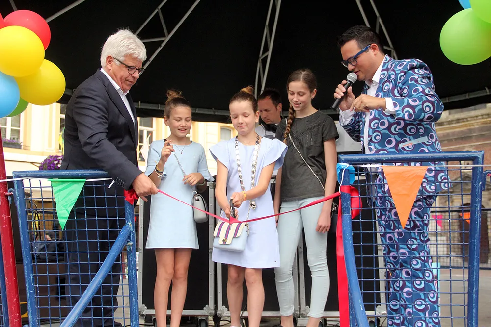 Het kinderfestival werd vanmiddag om 12:00 uur geopend door burgemeester Sjraar Cox, die voor de duur van het KènjerFest zijn ambtsketen aflegde nadat hij Charlotte Frusch - de eerste kinderburgemeester van Sittard - haar ambtsketen had omgehangen. Daarna knipte Charlotte bij wijze van startsignaal een rood lint door en bezocht ze samen met twee door haarzelf gekozen kinderwethouders de verschillende attracties.