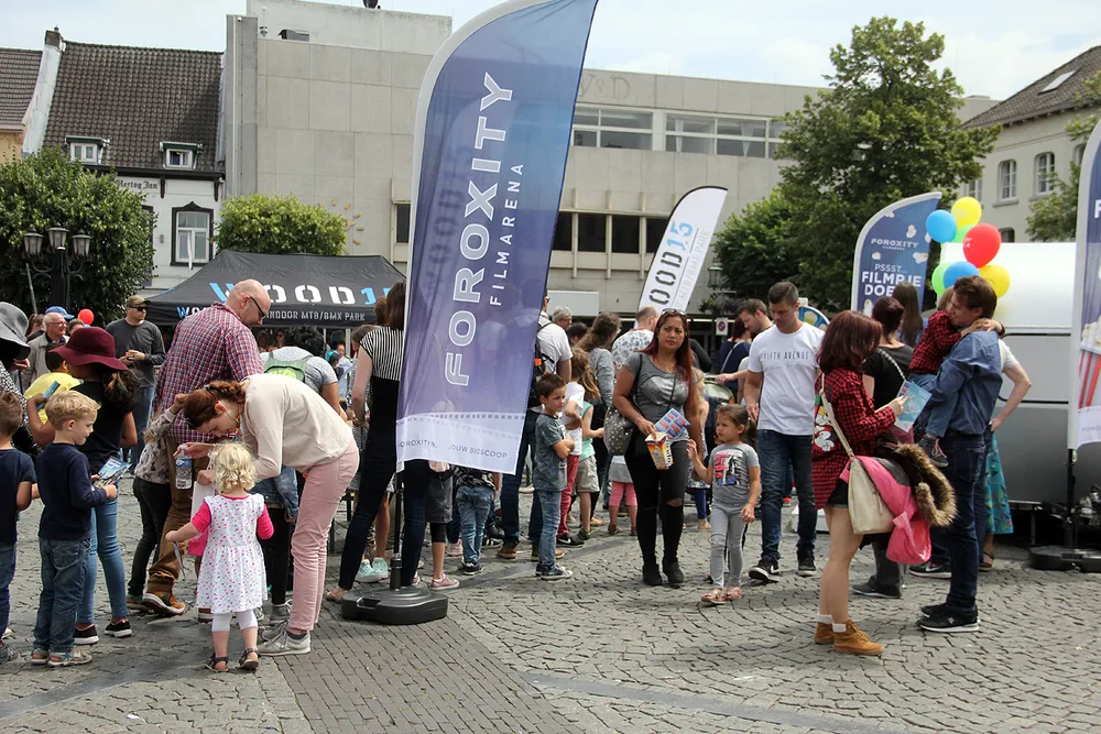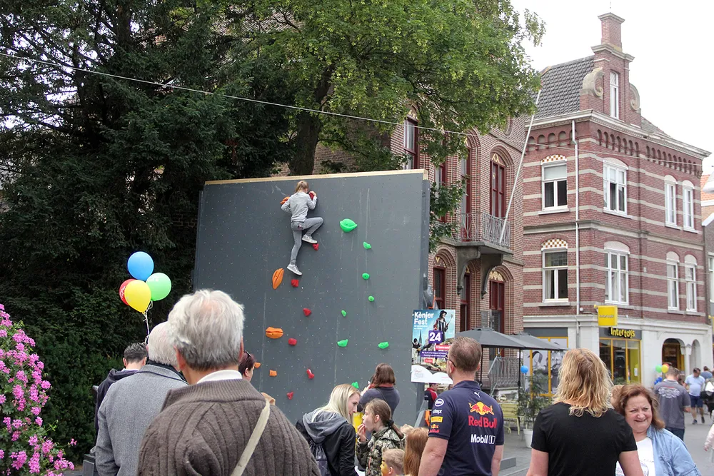 En daar werd het gaandeweg drukker en drukker. Er waren sportieve activiteiten - in een pannakooi die onder toezicht stond van twee spelers van Fortuna Sittard werd fanatiek gevoetbald; er kon worden geklauterd; er was een stormbaan; je kon steppen of fietsen op een BMX-baan, maar je kon ook een filmpje pikken; je kon worden geschminkt; er werd volop gekleurd en getekend én je kon gratis popcorn, een ijsje, een hamburger of een suikerspin krijgen én er was natuurlijk snoep. En dat werd door de doelgroep, gezien de rijen die er op verschillende plekken ontstonden, bijzonder goed gewaardeerd. Kortom: KènjerFest is voor herhaling vatbaar!