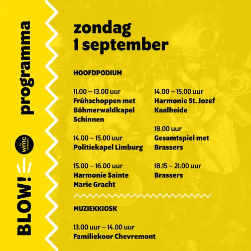 Bart van der Roost is enthousiast: "Met BLOW! by WMC brengen we een ongeëvenaarde mix van blaasmuziek naar Kerkrade. Dit festival is de ideale plek om samen met vrienden en familie te genieten van de veelzijdigheid van onze muziek." Björn Bus voegt toe: "We combineren de rijke traditie van blaasmuziek met moderne muziekstijlen, waardoor we zowel festivalliefhebbers als blaasmuziek liefhebbers samenbrengen. Het programma zit boordevol gevarieerde bands en ensembles."