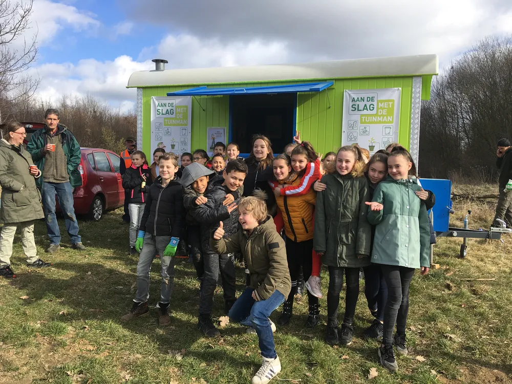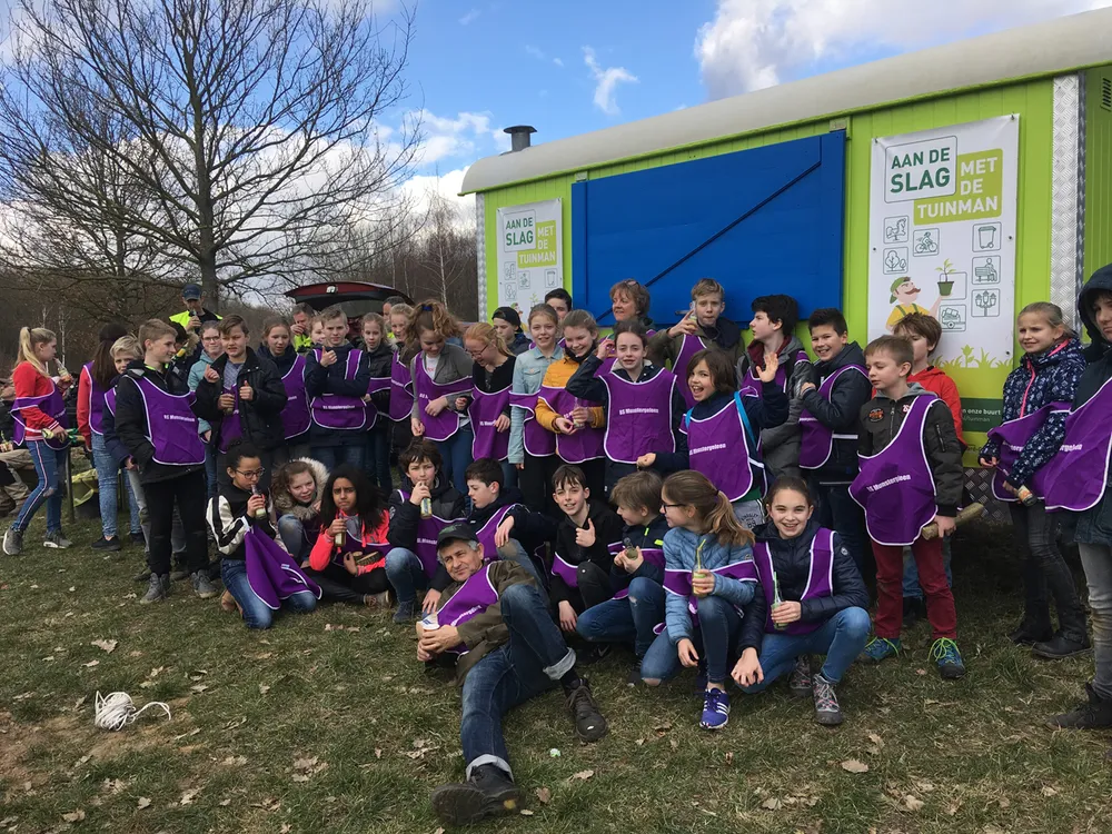 Groot was het enthousiasme van de 113 schoolkinderen en hun begeleiders tijdens de Boomwerkdag in het Absbroeksbos op 19 februari.