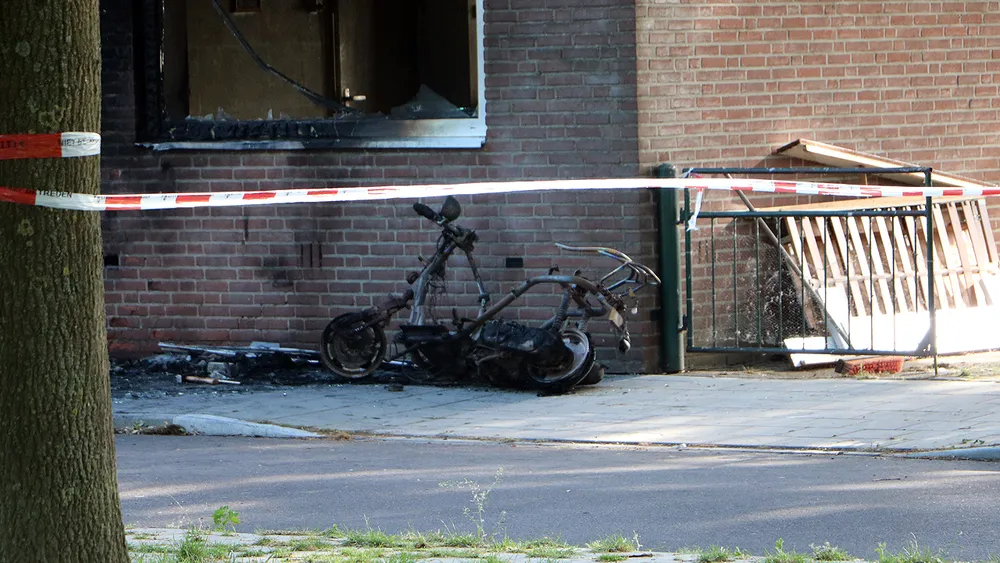 Daar stond een voor een woning geparkeerde bromscooter in brand en was het vuur overgeslagen naar de woning.