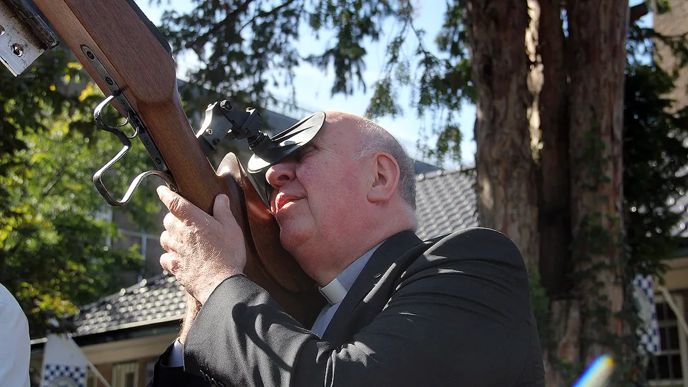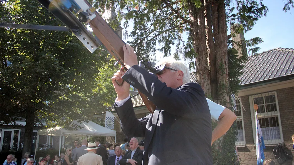 Daarna was het aan burgemeester Sjraar Cox, deken Van Rens, de kersverse beschermheer en de koning van afgelopen jaar om de eerste schoten te lossen.