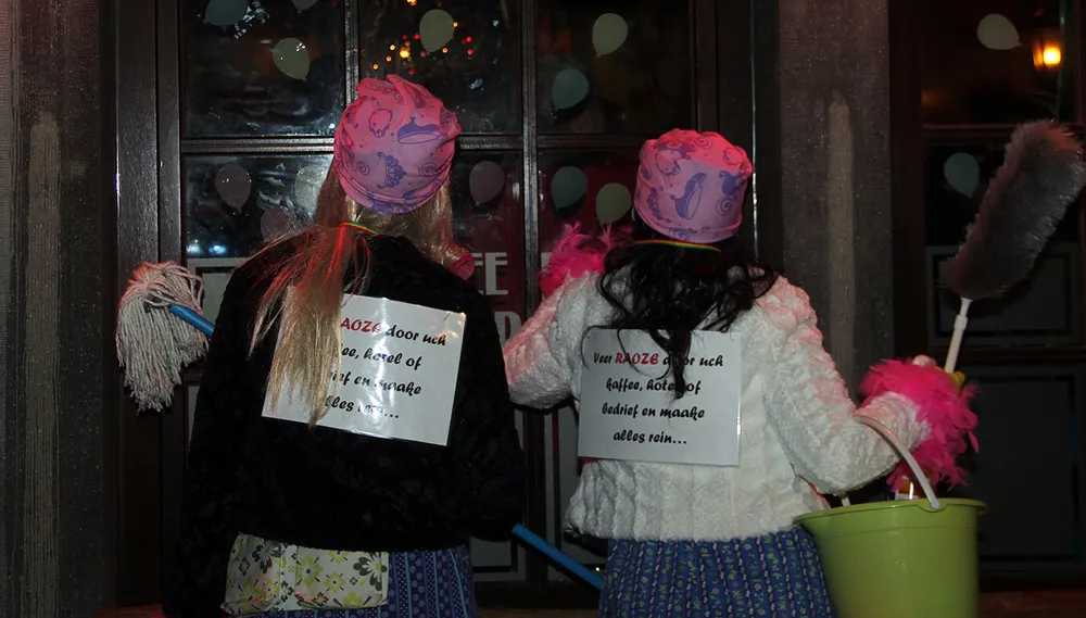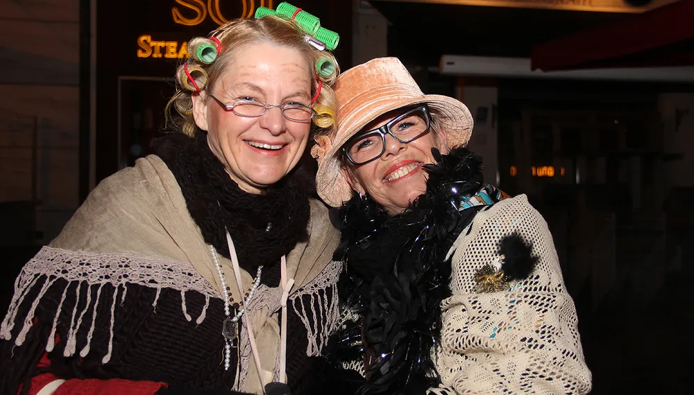 Op de Markt trok het Convent van Neit Prinse zoals gewoonlijk weer met de klok mee langs de diverse café's om de Auw Wiever de gelegenheid te geven om zich te presenteren, zodat de Neit Prinse daaruit het sjoonste Auwt Wief kunnen kiezen. Ondertussen werd er links en rechts behoorlijk op los 'gesjlach', opvallend vaak door in RAOZE (of was het nou ROAZE) uitgedoste Auw Wiever. Maar er liepen ook de nodige traditionele Auw Wiever rond.