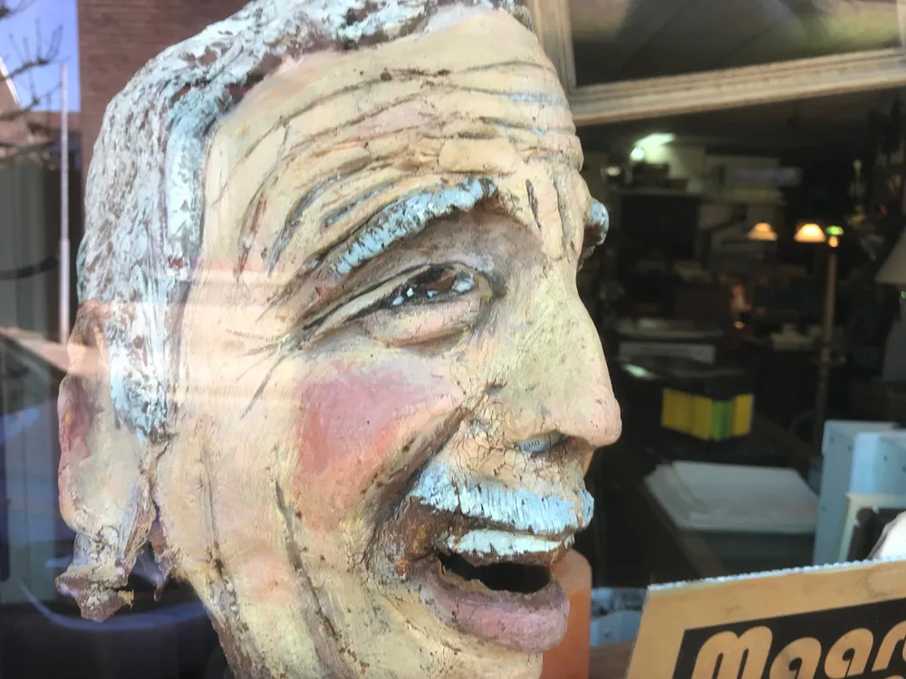 Veel van de door Laudy gemaakte maskers zijn momenteel te bewonderen in de etalage vanMartin’s Market. Deze heerlijke snuffelwinkel in curiosa, brocante, vintage en antiek is gevestigd aan Ophoven 96 en wordt gerund door Maarten Garritsen. Met carnaval in het verschiet leek het Martin een leuk idee om de maskers in de etalage van zijn winkel te exposeren. En bij wijze van hoge uitzondering stond Luc Laudy zijn maskers in bruikleen af.