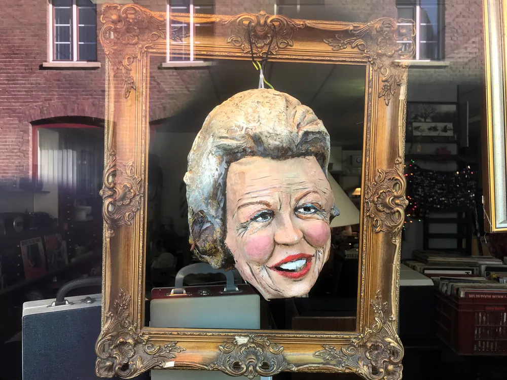 Op vier maskers na zijn ze allemaal te zien in de etalage van Martin’s Market. “Helaas hebben de maskers van Frans Heuts en Sjra Houtakkers de tand des tijds niet doorstaan”, zo laat Laudy weten. “Jan Smeets heeft zijn masker thuis in de kast staan. Het masker van prins Charles is verdwenen: dat heb ik een keer uitgeleend maar het is nooit meer teruggekomen…”. Mocht iemand weten waar dat masker is gebleven? Meld dat dan even.