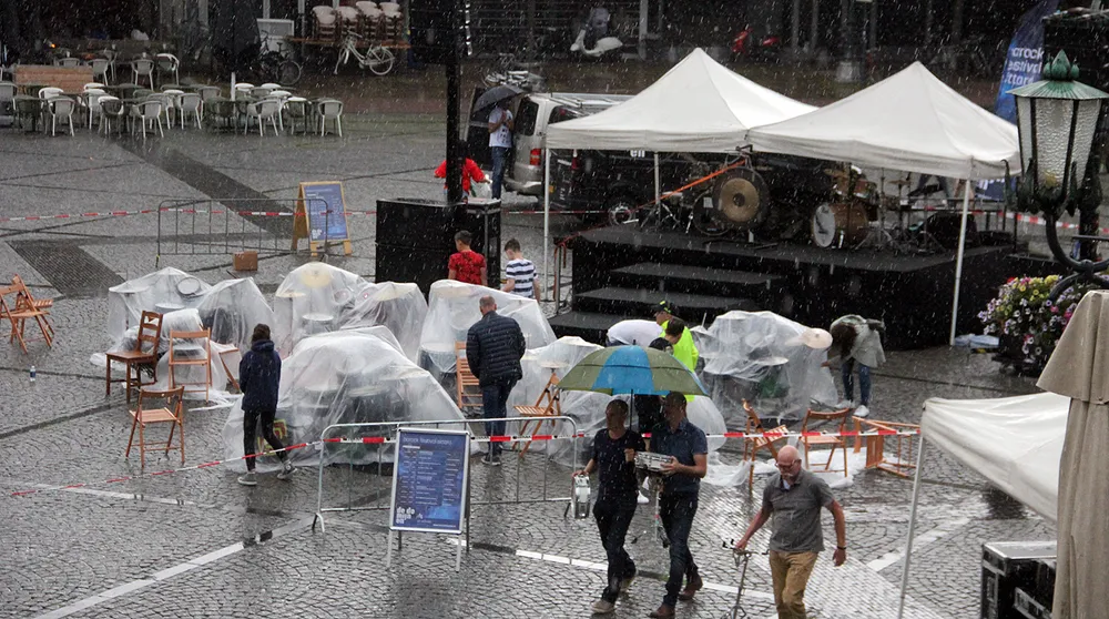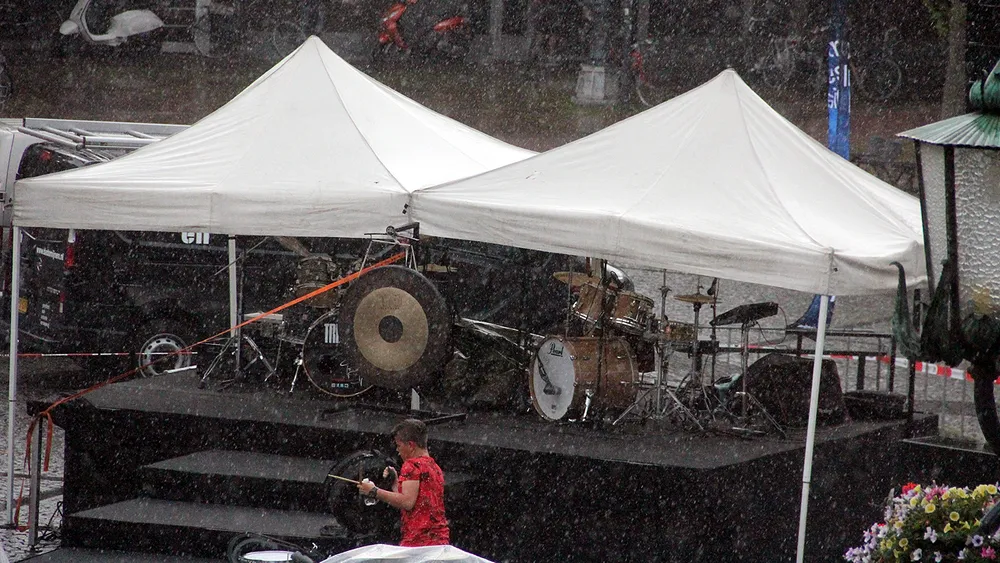 Een fikse plensbui leidde ertoe dat de aftrap van het derde Barock Festival in Sittard een dik half uur moest worden uitgesteld. Daarna gingen de remmen los.
