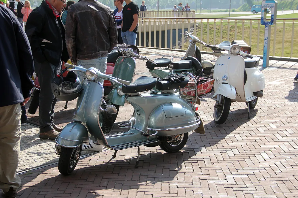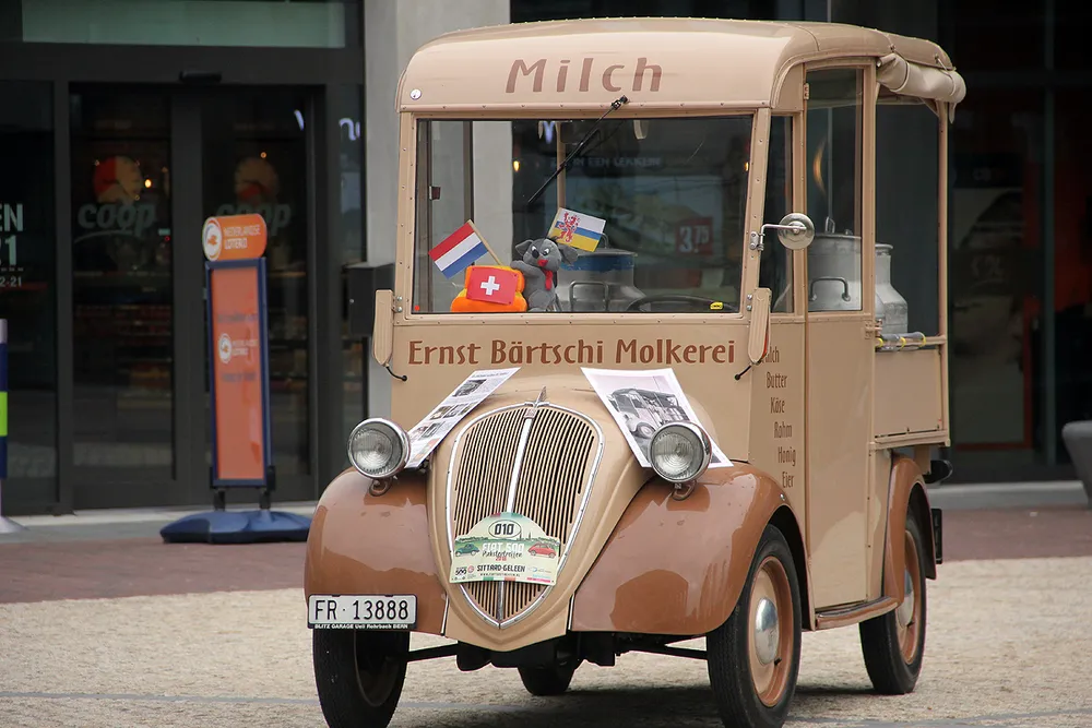 Er waren diverse echt oude modellen tezien, zoals een aantal Topolino’s. Grootste blikvanger was toch wel een oude melkwagen uit 1936, die door een liefhebber uit Zwitserland in originele staat was gerestaureerd. Verder reden vandaag ook leden van de Vespaclub mee in de toertocht.
