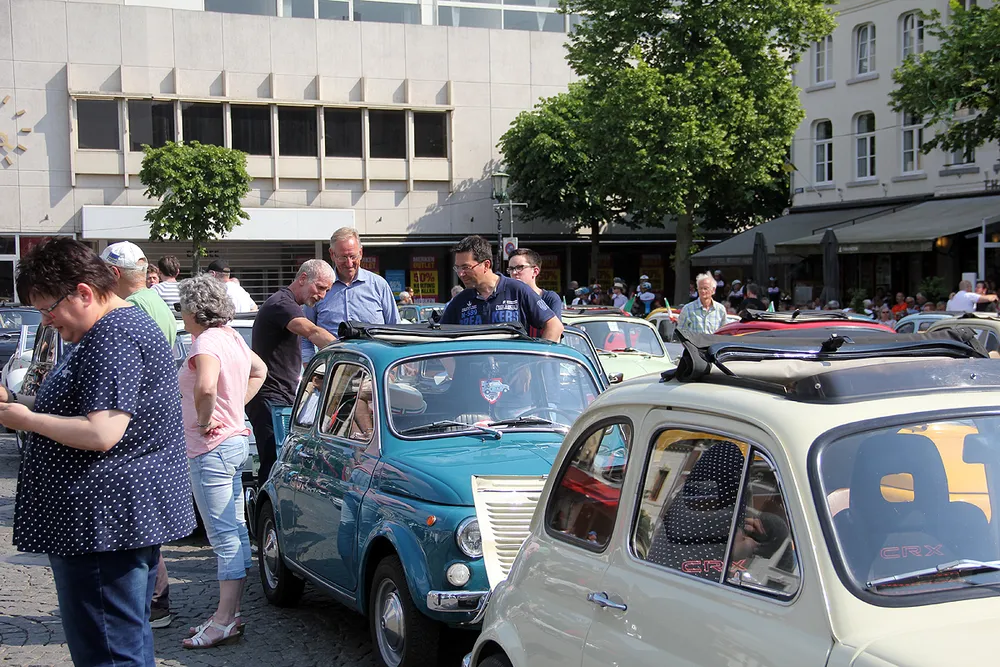 Ruim 100 klassieke Fiats in allerlei kleuren en uitvoeringen gaven acte de présence. Na een ontvangst op het Ligneplein in Sittard gaf burgemeester Sjraar Cox zaterdagochtend het officiële startsein voor een informeel feestje van de internationale Fiat 500 familie. Er werd getoerd door de omgeving - "nu eindelijk eens een keer niet door het heuvelland, maar in de omgeving van Sittard-Geleen" - en er werd geluncht in Geleen (op zaterdag) en in Hoensbroek (op zondag). Zaterdagavond werd er gezamenlijk op het Ligneplein een Italiaanse maaltijd genuttigd en zondagmiddag werd het treffen na een grote finale op de Markt afgesloten in het Mariapark met een 'frit zoervleisj' van De Gats en een lekker biertje van brouwerij Ambrass.