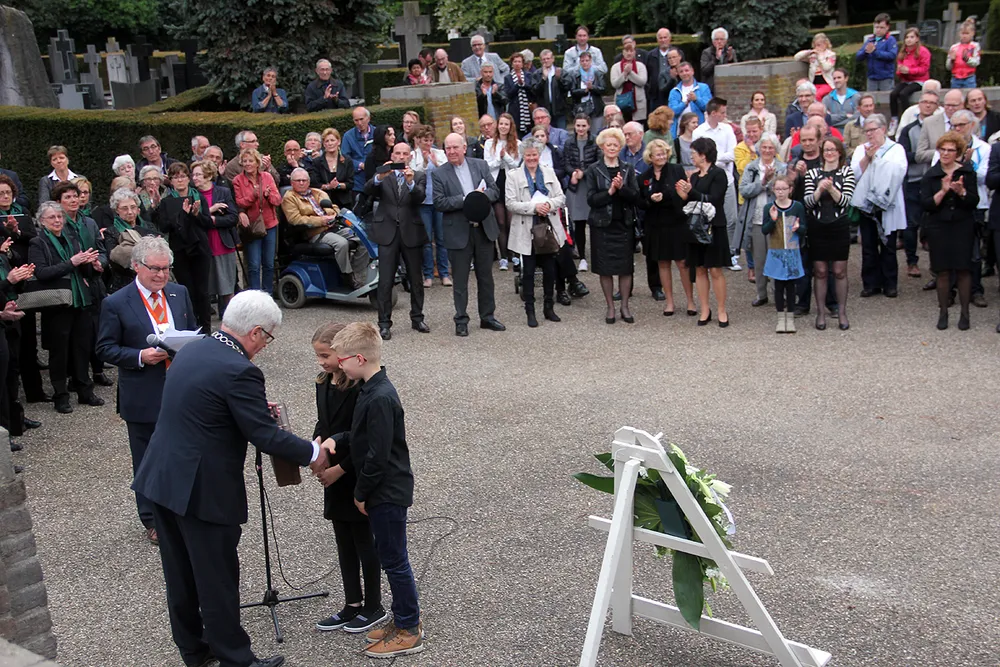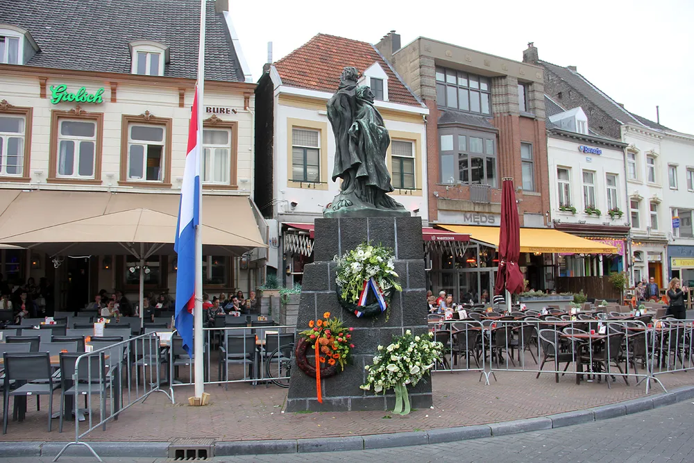 Voorafgaand aan de herdenkingsplechtigheid op de Algemene Begraafplaats werden bij het Oorlogsmonument op de Markt in Sittard kransen gelegd.