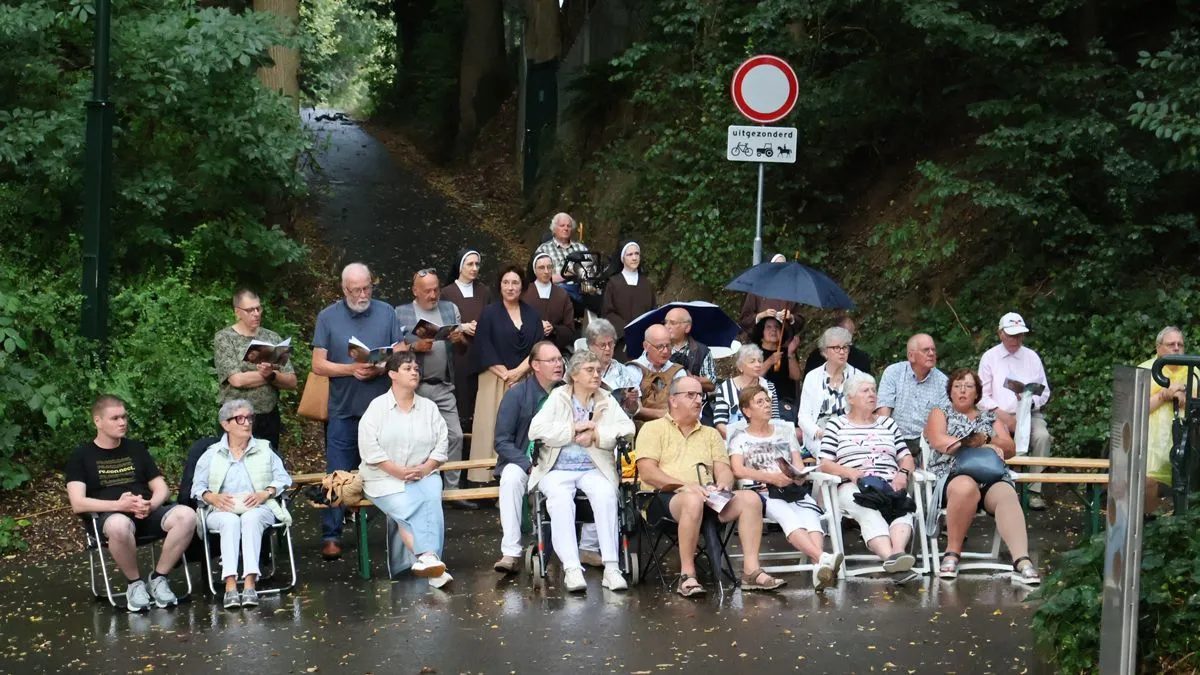 Marcel Boreas - De tweede dinsdagse openluchtmis bij de Sint Rosakapel op de Kollenberg kende beduidend minder zonnige omstandigheden dan een week eerder.