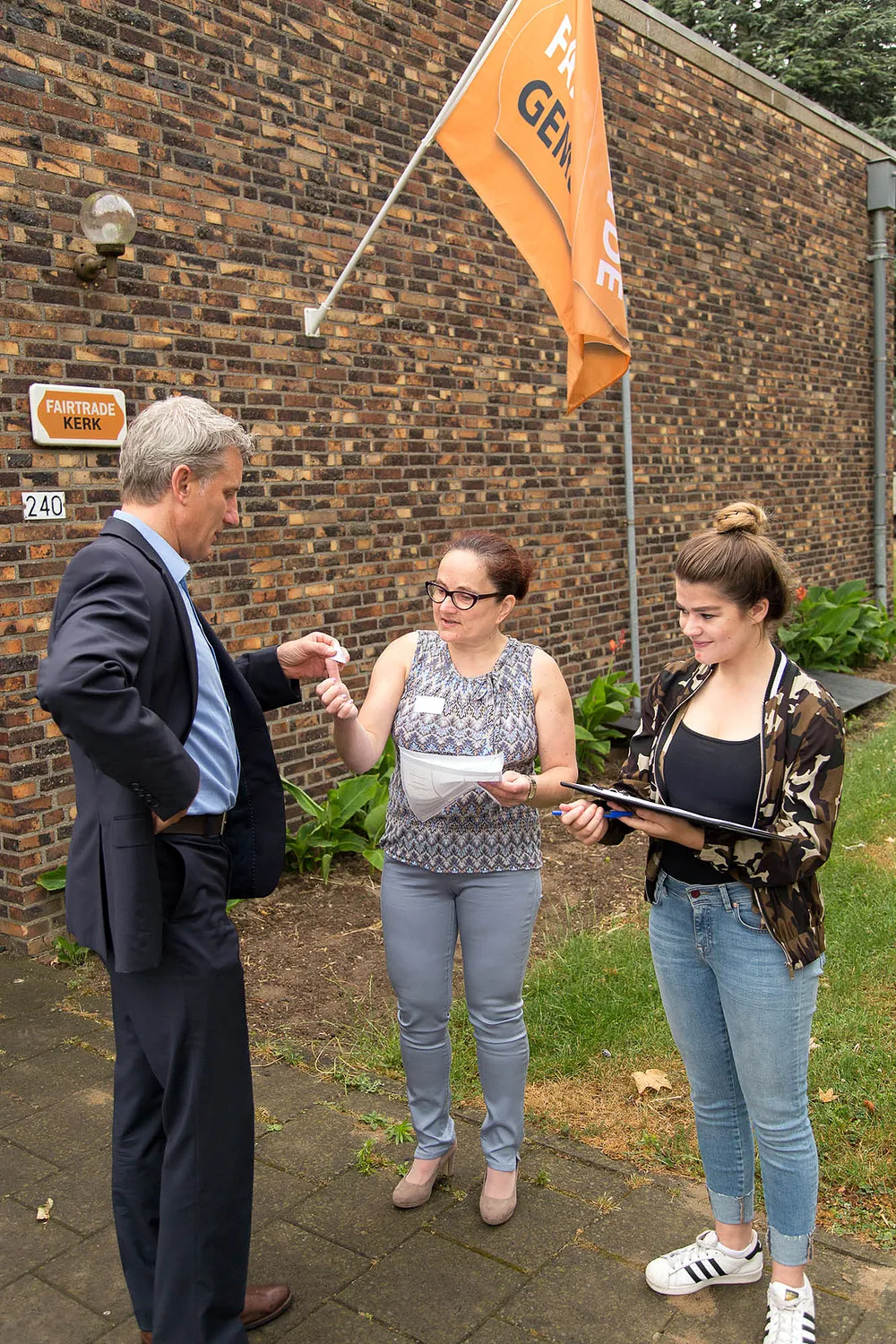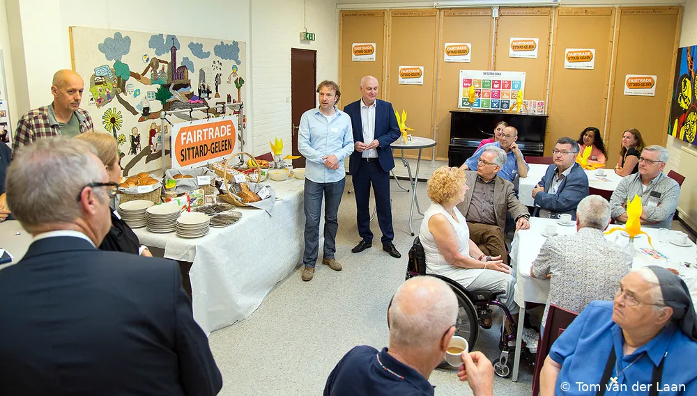 Wethouder Bert Kamphuis richtte kort het woord tot de aanwezigen om hen, mede namens de werkgroep, te bedanken voor hun deelname aan de Fairtrade Gemeente Campagne in Sittard-Geleen. Want mede dankzij hun deelname mocht Sittard-Geleen eerder dit jaar voor de zesde keer de titel Fairtrade Gemeente ontvangen. Wethouder Kamphuis hierover: "Het voor de zesde maal behalen van de titel Fairtrade Gemeente is een beloning voor iedereen die zich de afgelopen jaren in onze stad heeft ingezet voor Fairtrade. Dat doen we namelijk niet alleen. Dat gebeurt samen met de Fairtrade Werkgroep Sittard-Geleen, bedrijven, organisaties, winkels, scholen, horeca, etc. In onze gemeente zetten we met al deze partijen samen de schouders onder een betere wereld, iets waar ik ontzettend trots op ben."