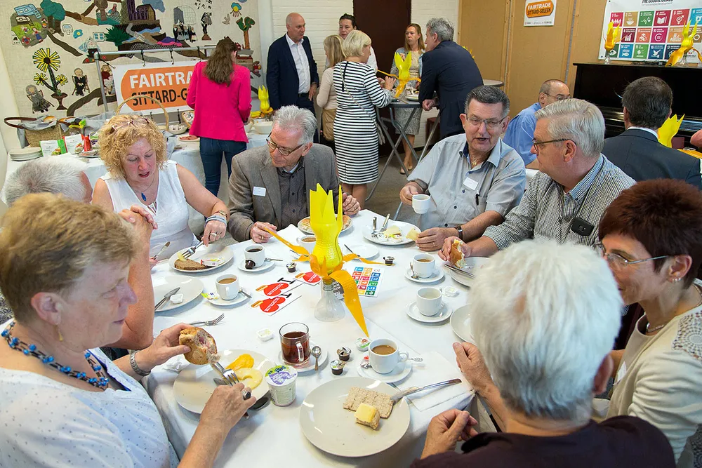 Ruim veertig vertegenwoordigers van organisaties die deelnemen aan de Fairtrade Gemeente Campagne in Sittard-Geleen, waren woensdagochtend 28 juni vroeg uit de veren om deel te nemen aan een Fairtrade Ontbijt in Fairtrade Kerk Vrangendael.