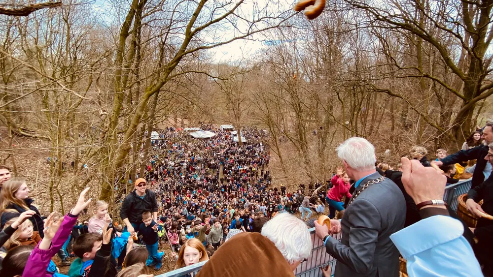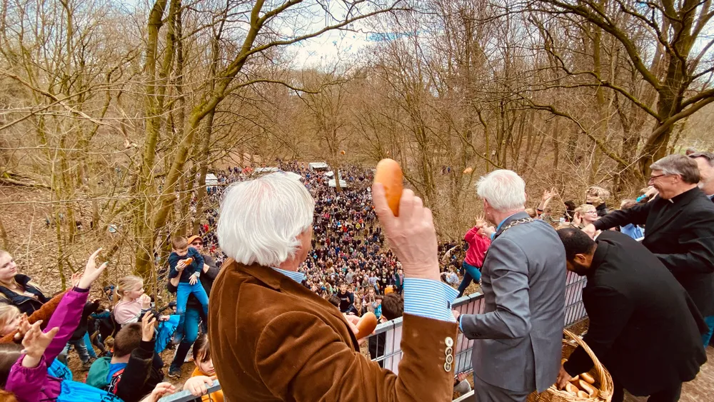 Daar hadden zich naar schatting een kleine tweeduizend mensen verzameld voor het jaarlijkse Krombroodrapen, een eeuwenoude traditie. De afgelopen 100 jaar werd het gebruik in stand gehouden door het in 1923 opgerichte Krombroodrapencomité, dat dit jaar dan ook zijn eeuwfeest vierde.