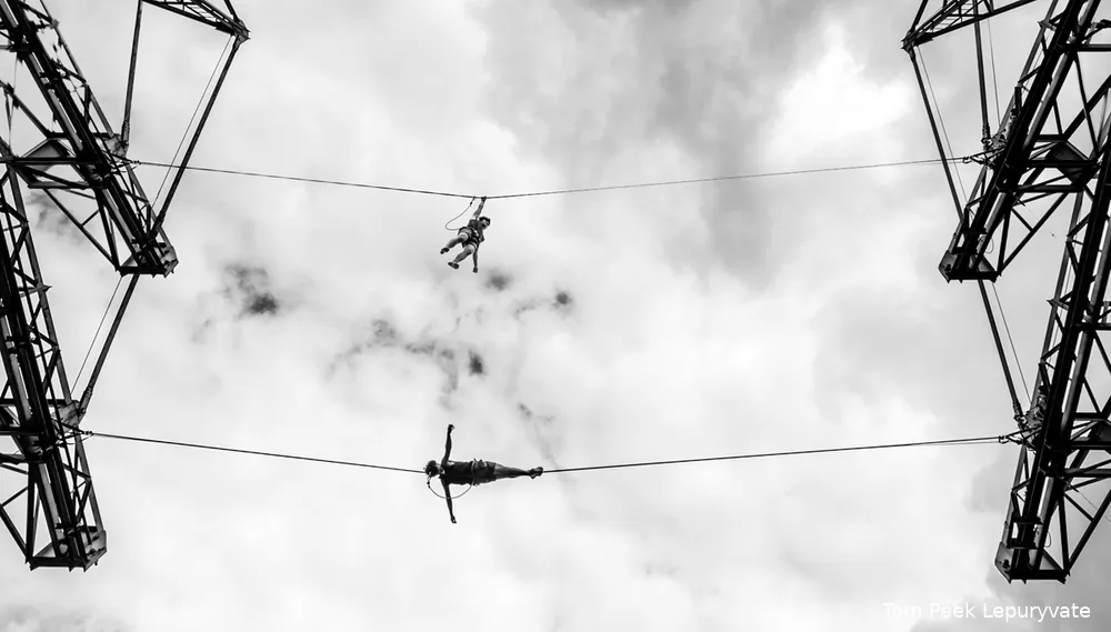 De gezekerde koorddansers gaan die dag vanaf 17:00 uur balancerend over touwen tussen de torenflats aan de Jonkerbergstraat en de Ursulastraat in Kerkrade lopen.