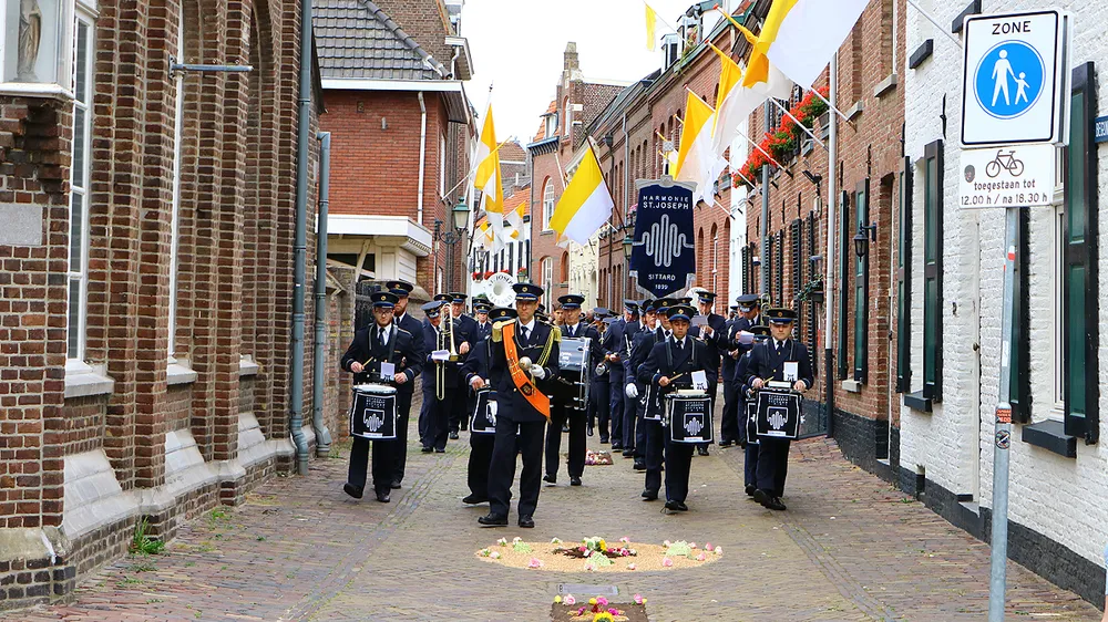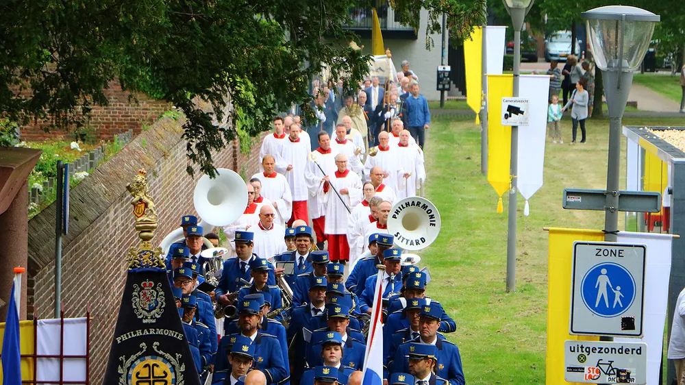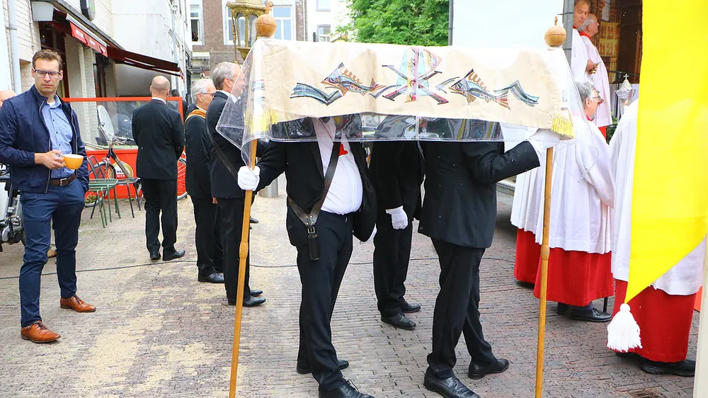 De afgelopen twee jaar trok de Sacramentsprocessie vanwege de coronapandemie niet door het centrum van Sittard, maar vandaag keerde de bidstoet terug.