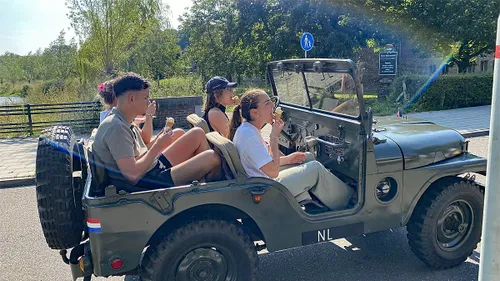Na een lunch aan de boorden van de Boschmolenplas bij Panheel werd de terugreis ingezet. En omdat de oude automobielen doorgaans geen airconditioning aan boord hebben werd op de terugweg nog even halt gehouden bij De Vief Heringe aan de rand van het stadspark in Sittard. Daar werden de deelnemers aan de rally getrakteerd op een ijsje van de Ieshering.