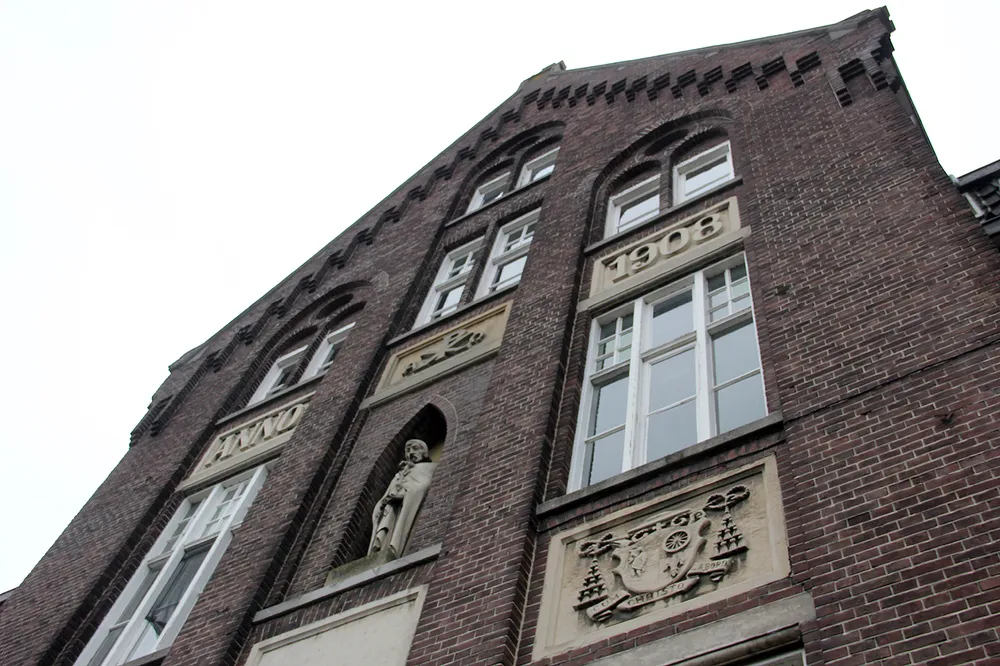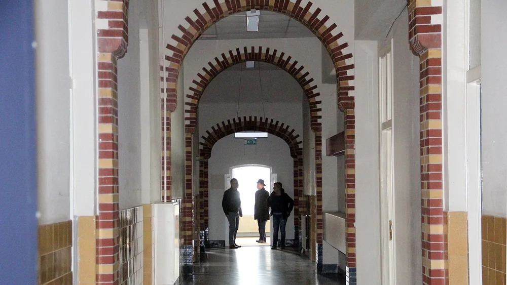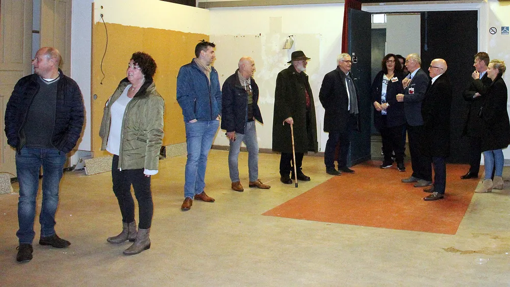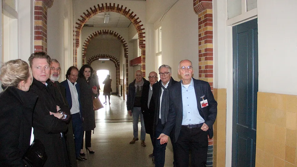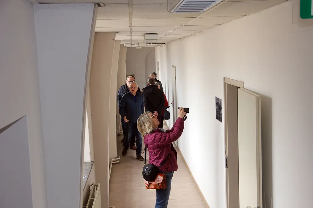Een aantal bezoekers, waaronder wethouder Meekels, architect Povse en projectontwikkelaar Mulleners, kregen na een korte lezing van de vereniging Sittards Verleden een rondleiding door het gebouw met oud-docent/directeur Theo Hanssen als gids. Voor Meekels was het bezoek een tour van herkenning, want ook hij sleet er zijn middelbare schooltijd.