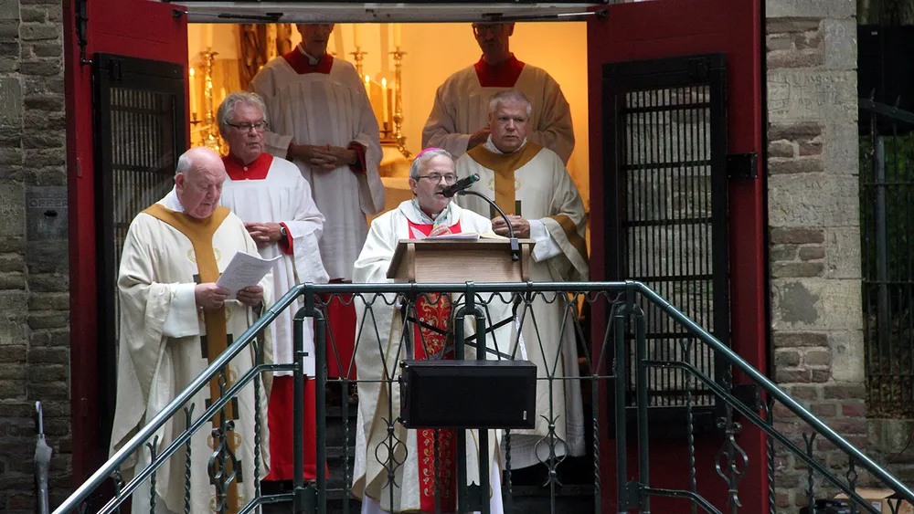 Aan het slot van de sfeervolle, door de Philharmoniker opgeluisterde dienst, vertelde hij dat hij de traditie van de openluchtmissen in de aanloop naar Sint Rosazondag al van jongs af aan kent. Hij woonde als kleine jongen weleens zo’n mis bij wanneer hij vanuit Born bij zijn oma in Sittard logeerde. De bisschop is ook celebrant bij de pontificale hoogmis op 24 augustus in de Sint Michielskerk en de Sint Rosaprocessie.
