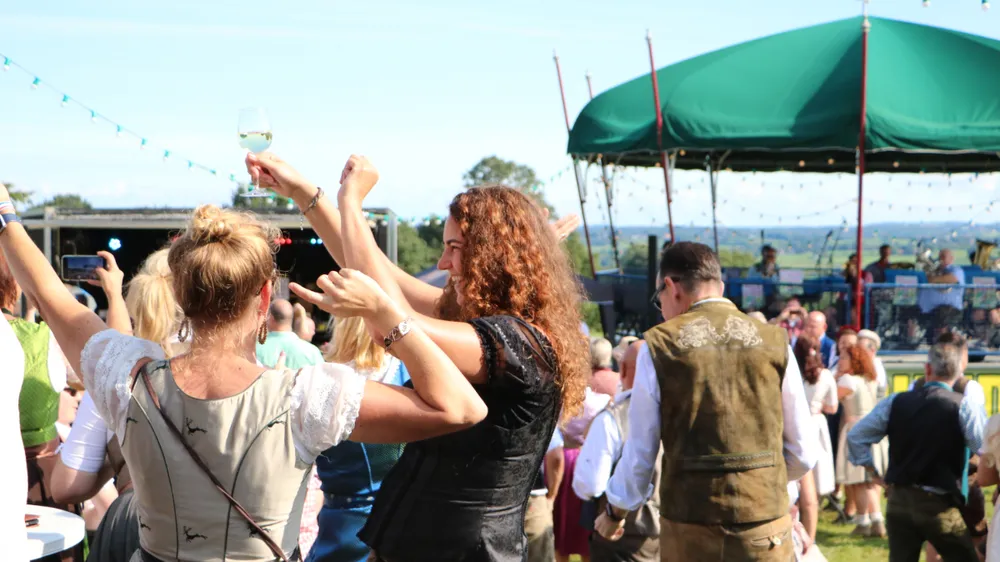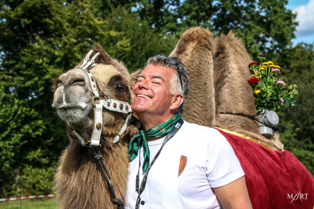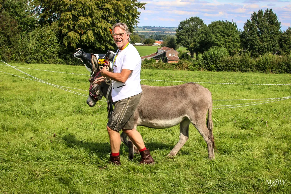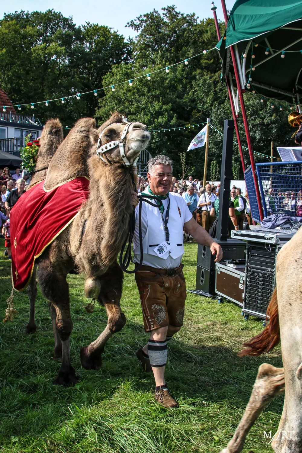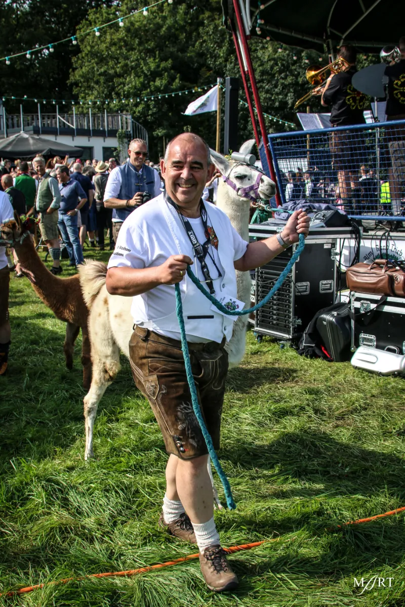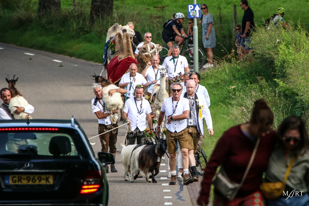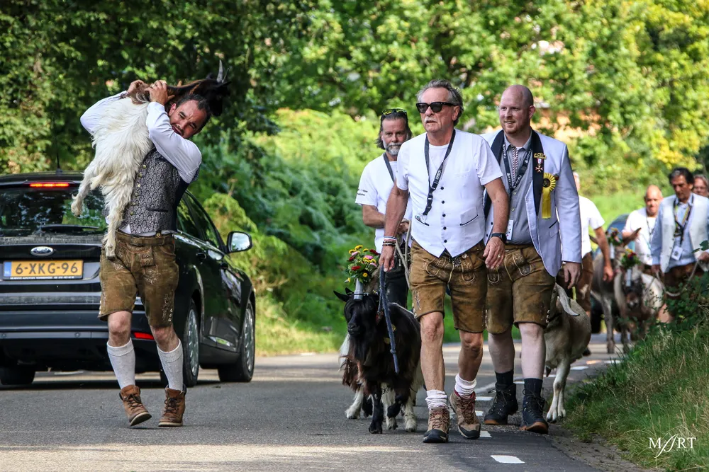 Als zo’n idee eenmaal landt in het brein van CVNP-baas Ton Meisen is er geen houden meer aan. En zo kwam het dat afgelopen zondag op een zonovergoten weide naast ‘t Voshoes in het prachtige Limburgse heuvelland, met in de verte aan de overkant van het dal het kerkje van Vijlen, werd gefrüshopt met muziek van de in Sittard normaliter enkel tijdens Oktoberfeestzondag optredende Zu Helle Kapelle. DJ Tonnie’s Viniellie, DJ Dirndl, de Böhmerwaldkapel en de Philharmoniker completeerden het programma, dat tot 18:00 uur duurde en dat om 14:00 uur werd onderbroken voor de Almrundtrieb. Ditmaal echter zonder koeien, maar wel met geiten, ezels, mini-paardjes, lama’s, alpaca’s een dromedaris en een kameel. Klik op de foto boven dit bericht om de door Mart Cremers gemaakte foto's te bekijken.