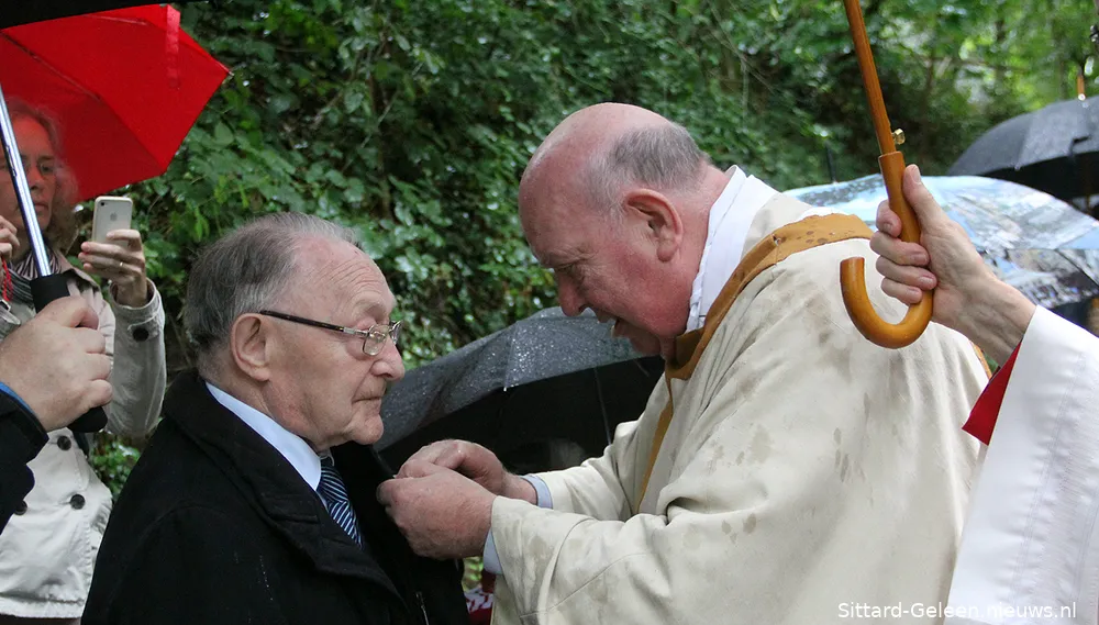 Het eerste speldje werd door Deken Van Rens opgespeld op de revers van Lou Schmeits, erelid van het St.-Rosacomité. Het tweede exemplaar was voor ontwerper Marc Webers.