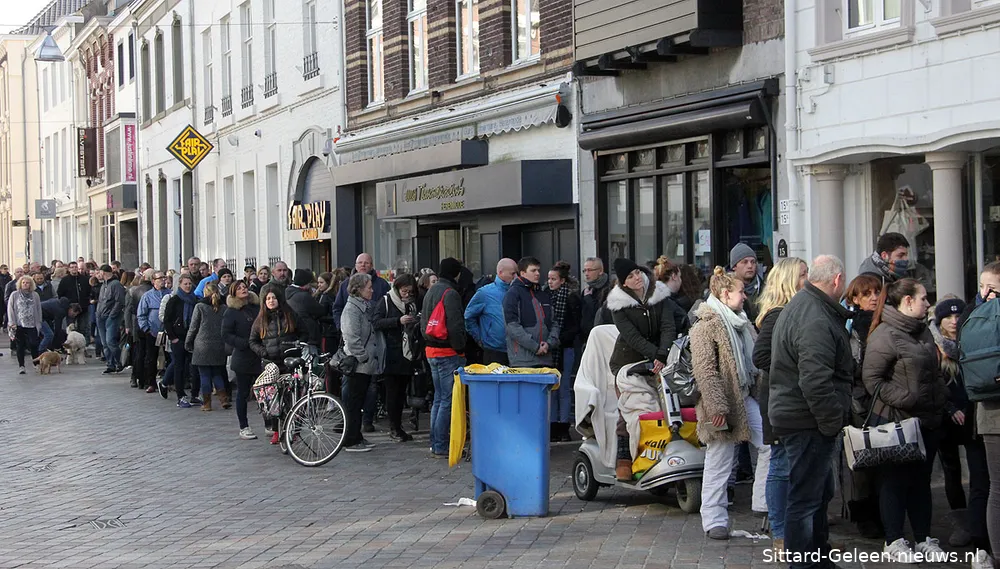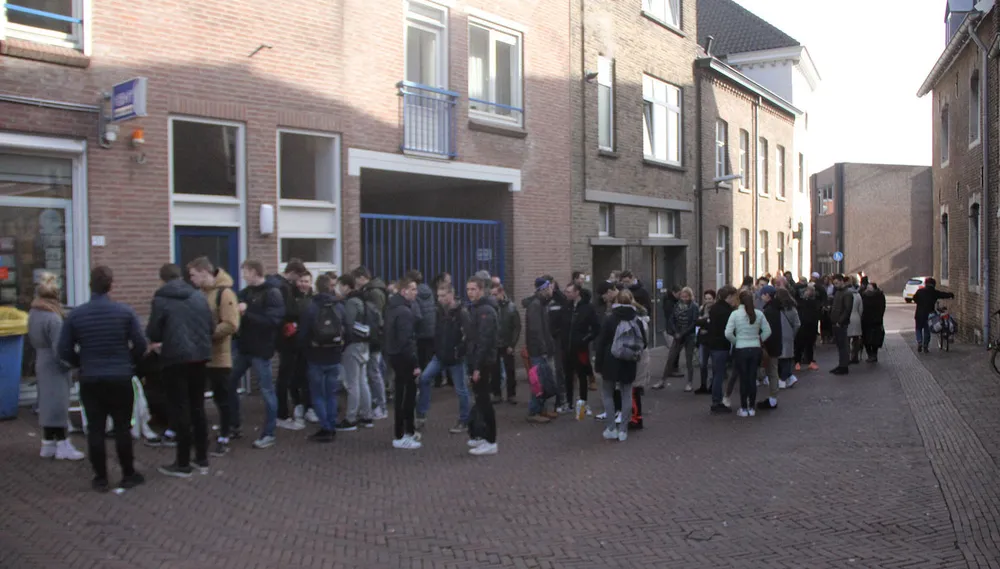 Ook in Sittard stonden flinke rijen voor de deuren van Primera op de Helstraat en Music Machine op de Paardestraat.