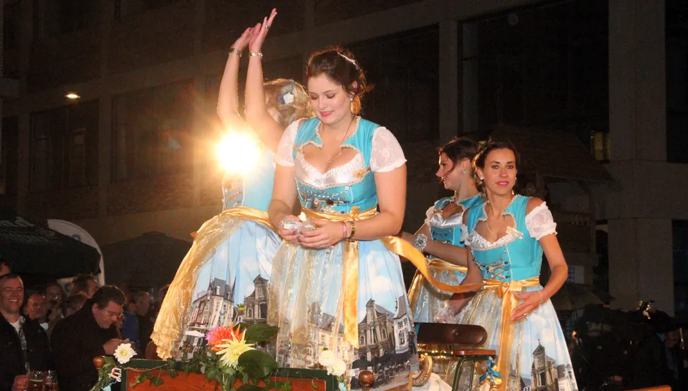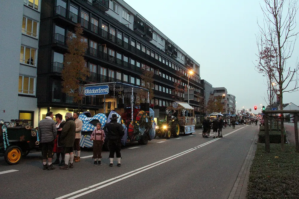 Daarna ging de Oktoberfeestparade van start met in totaal 33 deelnemende groepen, harmonie- en fanfareorkesten, majorettes en feestelijk opgesierde boerenkarren met Oktoberfeestgangers. Aan het slot natuurlijk de wagen met de kersverse Miss Oktoberfeest. Na afloop werd in een afgeladen Brand Weizenpaviljoen uiteindelijk met succes het - symbolisch - eerste vat bier aangeslagen. Dat gebeurde door burgemeester Sjraar Cox in het bijzijn van eregast Pierre Boels en uiteraard Miss Oktoberfeest Elise Schreuders.