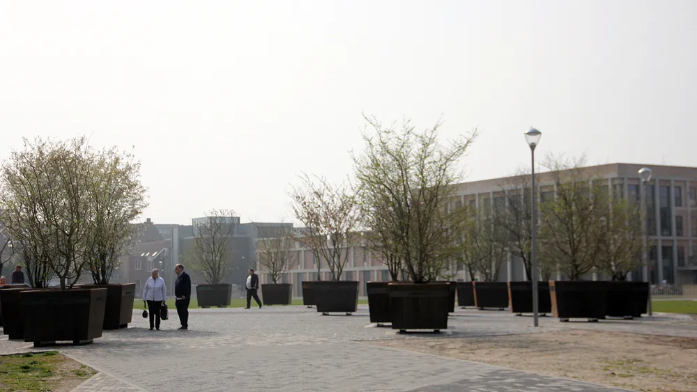 In de bestrating op het pleintje voor de brug over de stadsgracht op de Deken Tijssenstraat, waar 6 paden en straten samenkomen, waren al 28 vakken aangebracht. In de 28 cortenstalen bakken staan in totaal 8 verschillende boomsoorten. Samen vormen ze een mooie aankleding van de openbare ruimte. De plaatsing maakt onderdeel uit van het project Ligne en aankleding noordelijke schootsvelden.