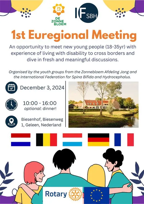 De jeugdgroepen van Zonnebloem Jong Westelijke Mijnstreek en de Internationale Federatie voor Spina Bifida en Hydrocephalus te Brussel, zetten zich in voor jongeren met een lichamelijke beperking. Op 3 december 2024 organiseren zij samen een bijeenkomst voor en door jongeren met als titel: