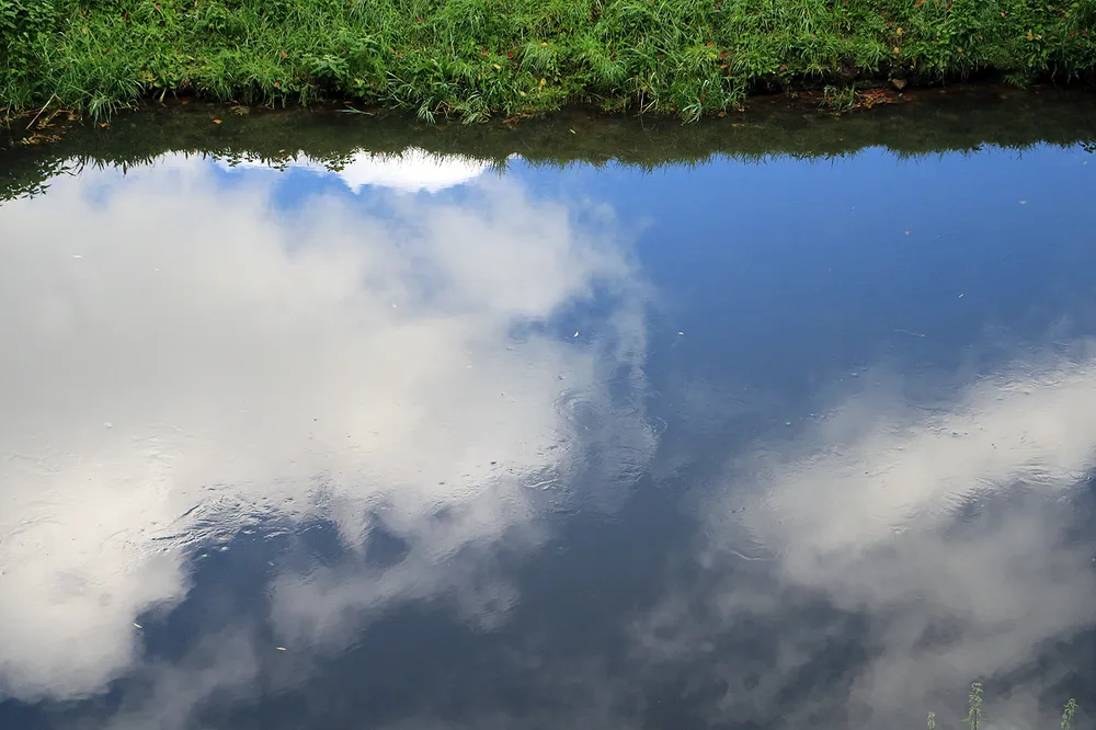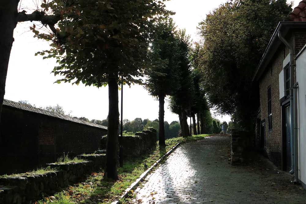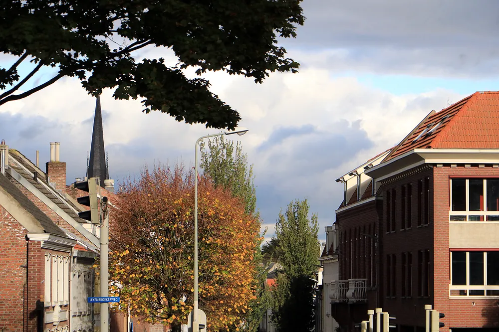 De straten zijn nog nat van een bui wanneer het wolkendek breekt en de nog laag staande zon met hard licht voor fraaie contrasten zorgt.