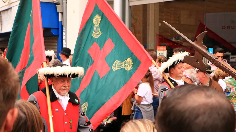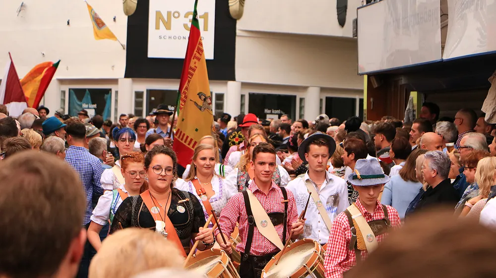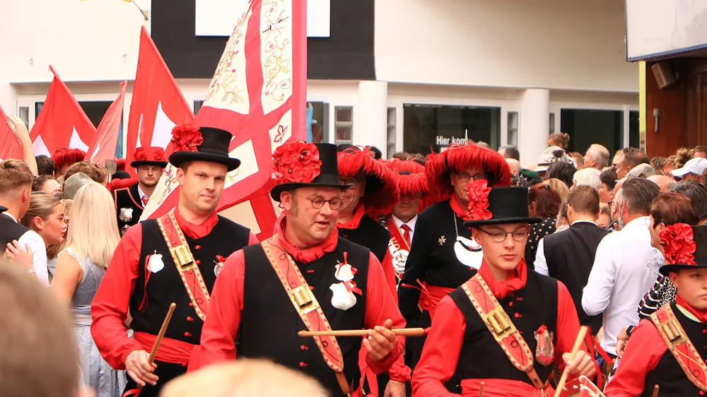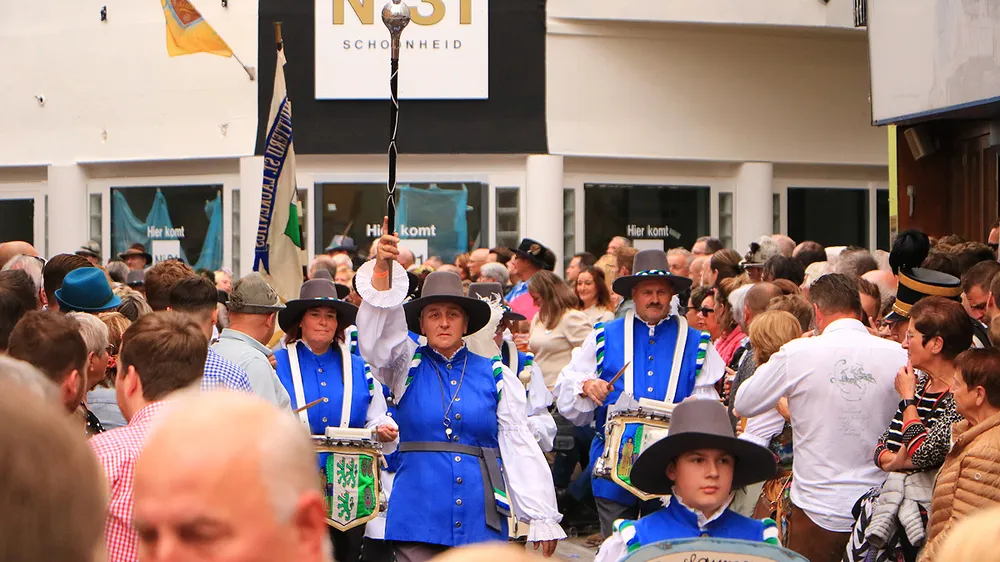 De stoet met schutterijen en gilden uit Nederland, België en Duitsland, die zich vanaf 13:30 uur door de straten van het Sittardse centrum bewoog, trok ook dit jaar weer enorm veel bekijks en werd - vooral bij de verschillende cafés op de route en in het bijzonder bij het passeren van de 'Böhmischer Traumkurve' ter hoogte van Kafee de Kup - met veel enthousiasme en applaus door het publiek begroet. De stoet was de gebruikelijke opmaat naar een meer dan geslaagde Limburgse middag.