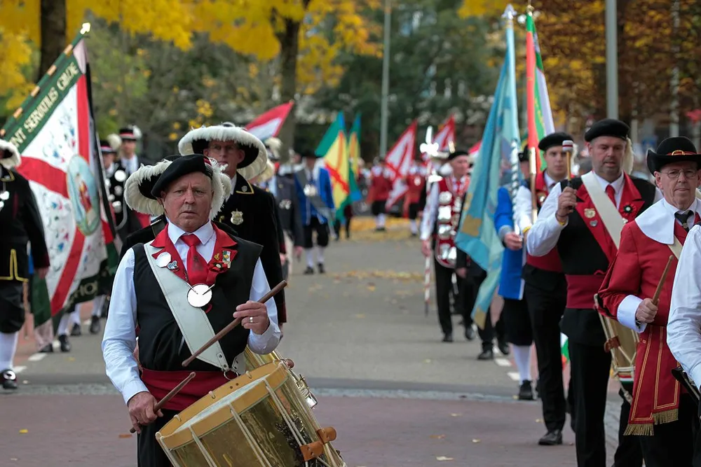 Zondag trok de altijd weer veel publiek trekkende Schutterijen- en Gildenoptocht door het centrum van Sittard.