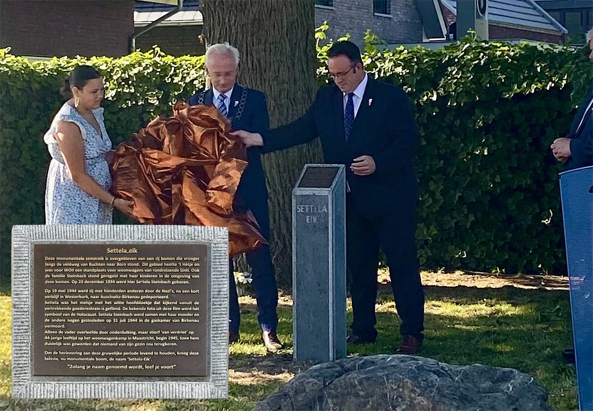Gisteren vond aan de Campus in Born bij de Settela-eik de herdenking plaats van de razzia, die vandaag 81 jaar geleden in Born plaatsvond. Een herdenking van een vergeten holocaust: die op de Roma, Sinti en Reizigers. Daarbij werd een herdenkingszuil met plaquette onthuld en werden bloemstukken gelegd.
