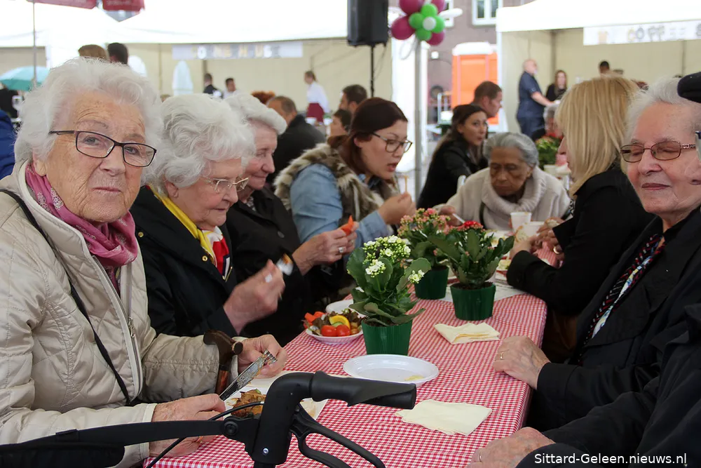Op het ook wel als Aspergefestival bekend staand evenement waren ditmaal niet alleen gerechten met asperges te krijgen, maar werden ook vele andere specialiteiten van de Geleense koks klaargemaakt. Friet zuurvlees en een lekkere sate gingen er met dit weer dan ook uitstekend in.