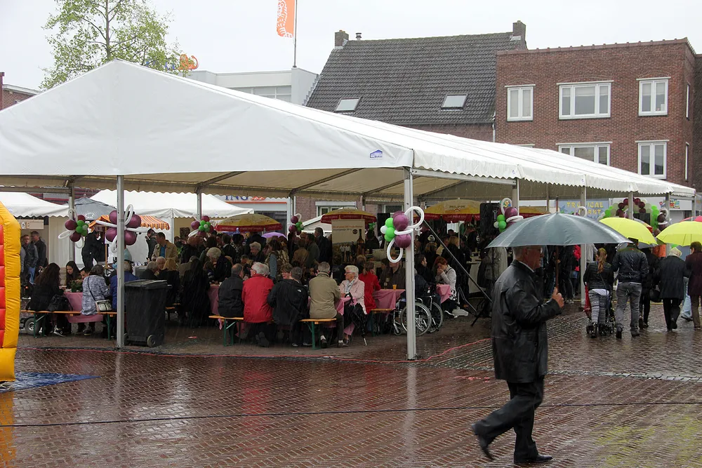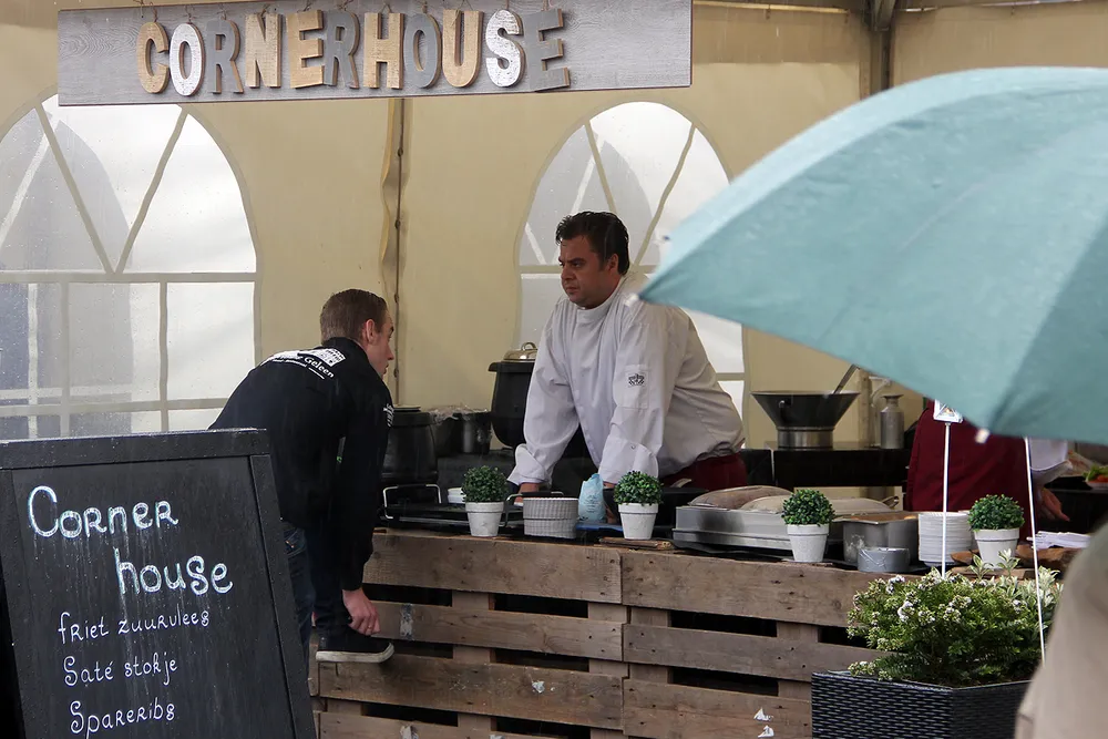 Jammer dat het een tijdje regende, maar het weer was niet van invloed op de sfeer en smaak van de gerechten op Gelaen moste preuve.