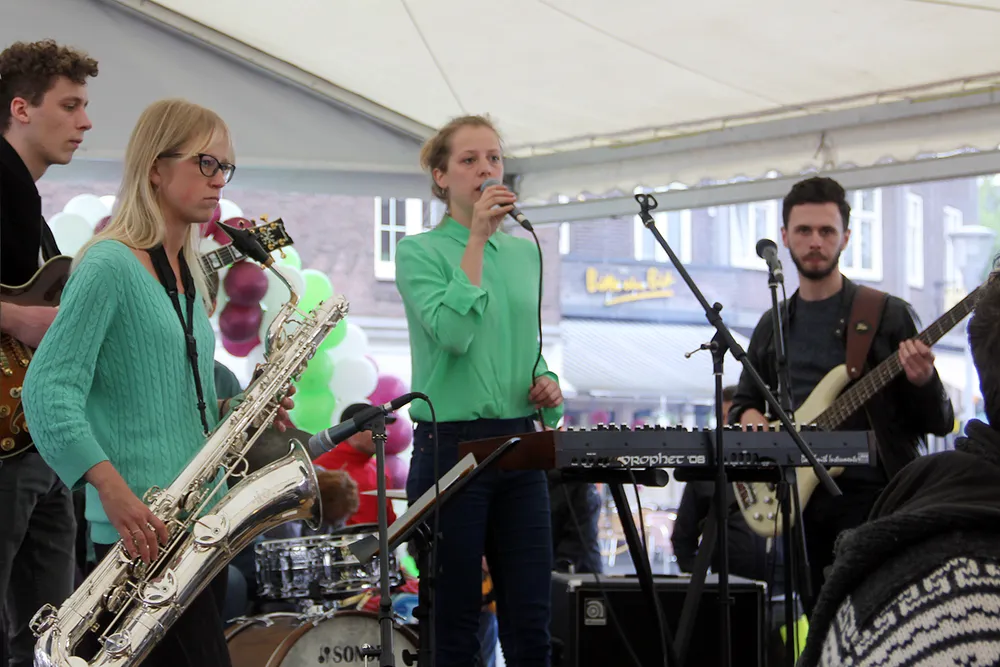 Op het overdekte middenterrein was het goed toeven. Er werd met volle teugen genoten van spijs, drank en live muziek.