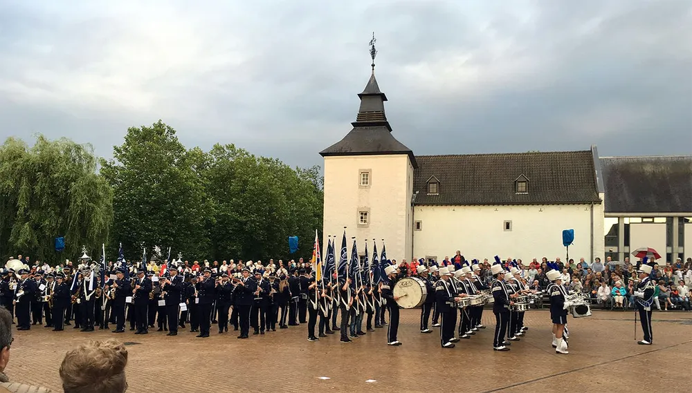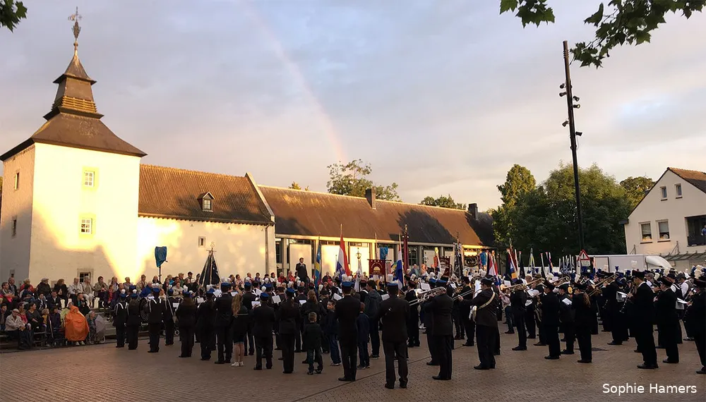 Onder een aanvankelijk dreigende wolkenlucht presenteerden de zes muziekvereningingen van de voormalige gemeente Born zich aan het in redelijke mate opgekomen publiek. Tijdens de show viel er gelukkig niet veel regen en na verloop van tijd brak zelfs de zon weer door.