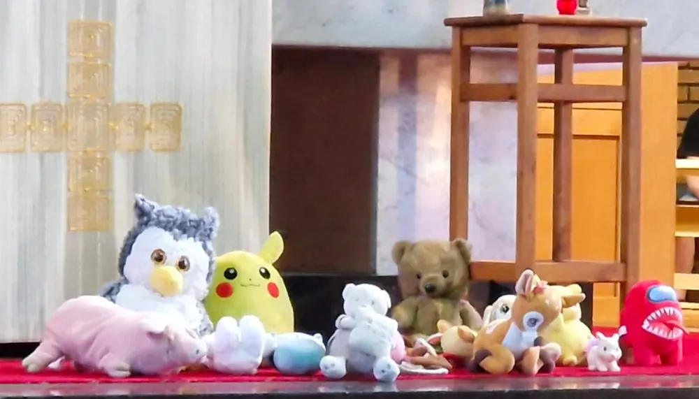 In de Heilig Hartkerk in Overhoven werden zondagochtend tijdens de gezinsmis de nodige pluchen knuffels gezegend.