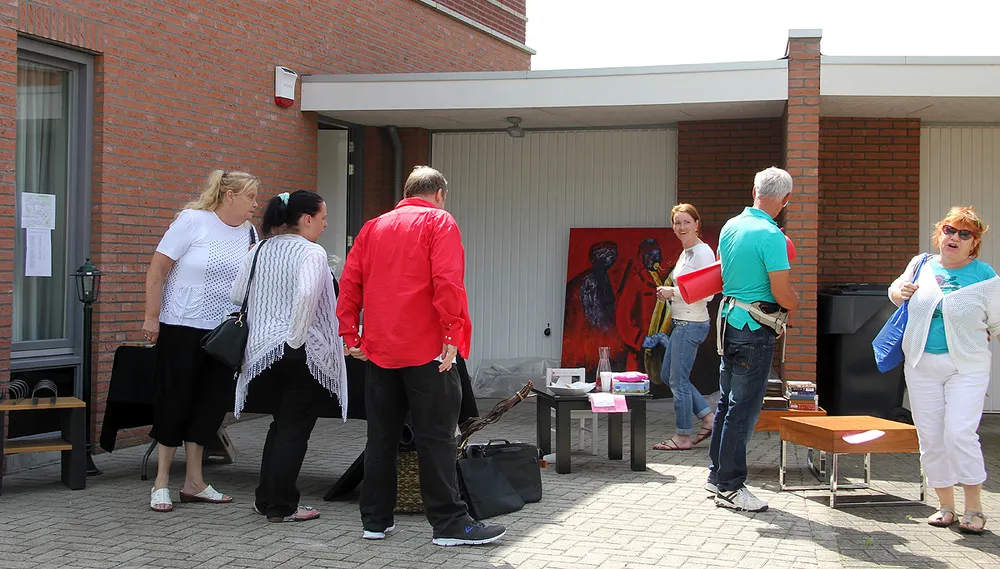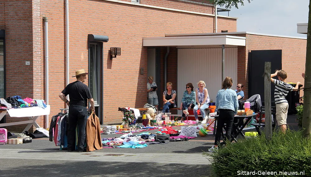 Het aanbod bestond uiteraard uit gebruikte spulletjes, speelgoed, meubilair, boeken, puzzels, tv-toestellen, kleding, schilderijen... En zoals dat altijd gaat met dit soort verkoopactiviteiten waren er ook weer veel belangstellenden. Altijd leuk om eens te zien welke 'rommel' de buren te bieden hebben, nietwaar? Maar niet alleen buurtgenoten struinden langs de koopwaar, ook mensen die spullen opkopen om zelf op andere markten weer door te verkopen werden er gesignaleerd, al dan niet met bestelwagen.