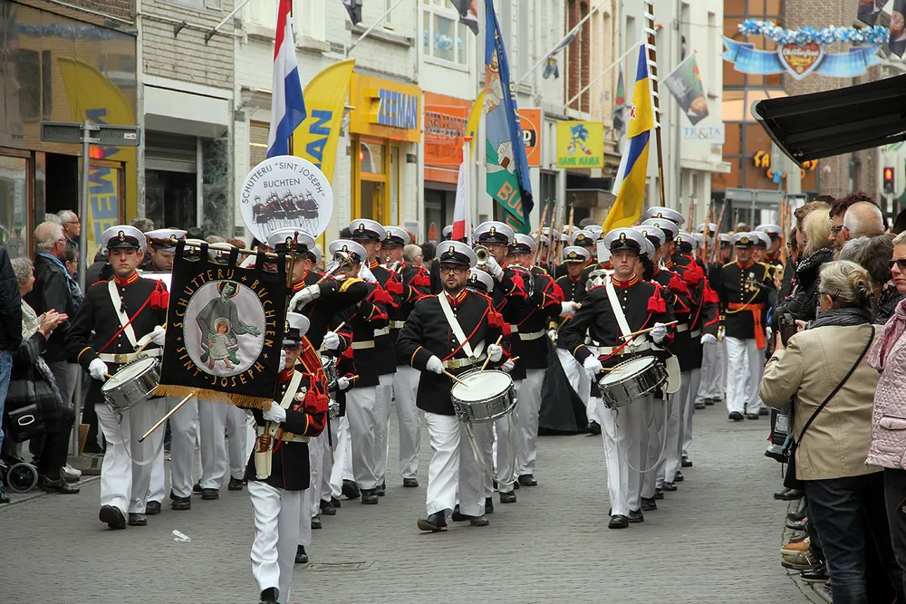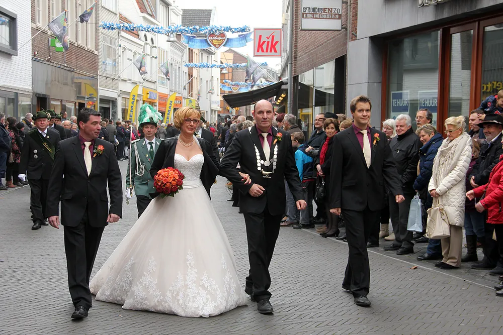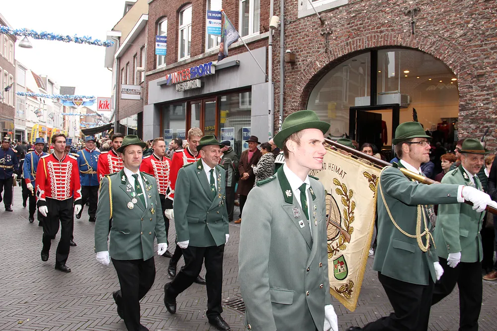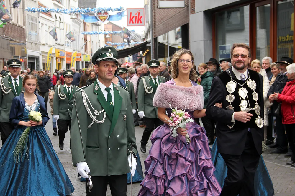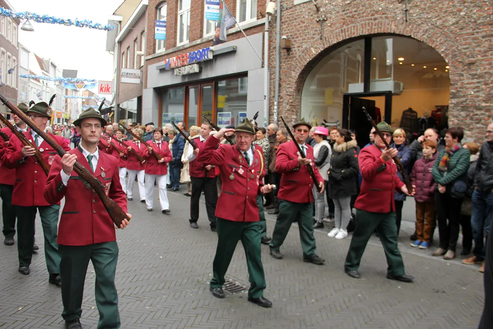 Na een aantal optredens van Limburgse zangeressen begonnen de schutters aan de optocht door de met publiek uitpuilende straten van het centrum. Teruggekomen op de Wiese werd vervolgens begonnen met de schietwedstrijd 'Koning de koningen', waarin de koningen van de deelnemende schutterijen en gilden het tegen elkaar opnamen.