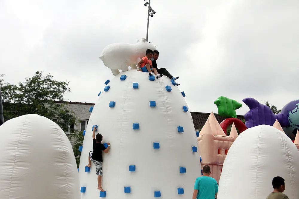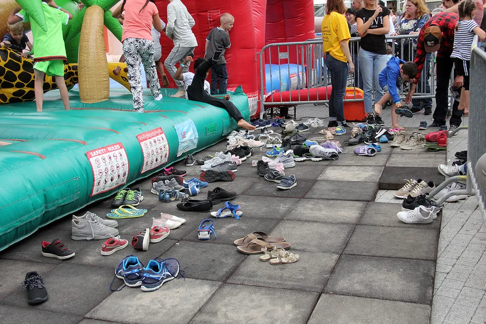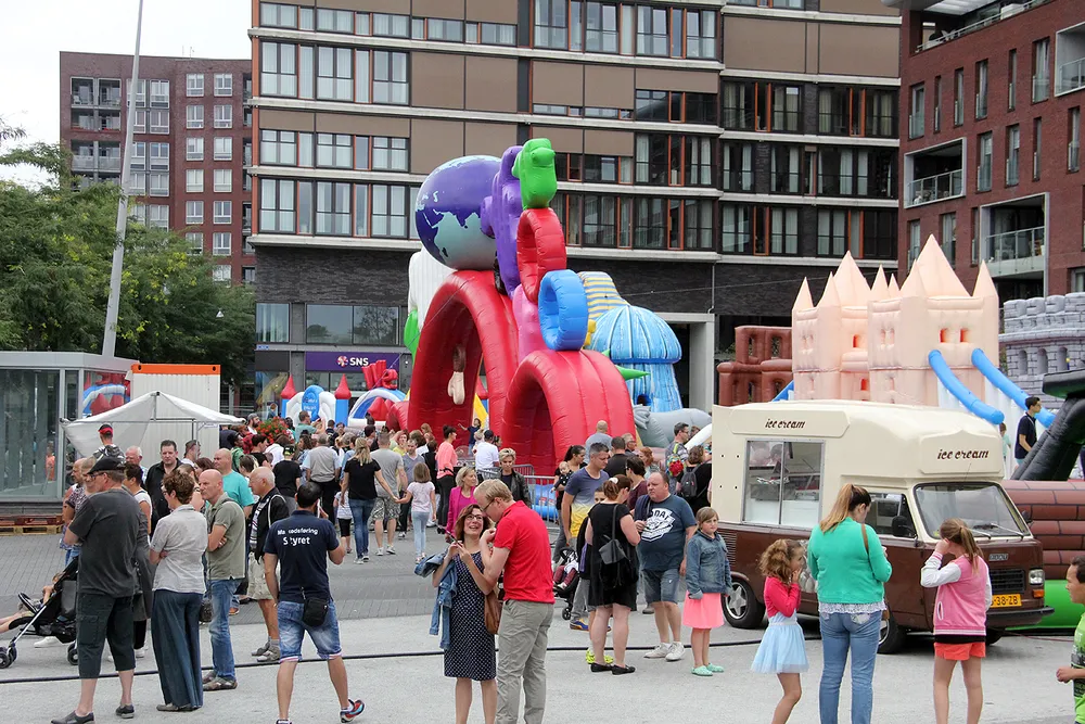 Overdag stond op de nieuwe Markt in Geleen de World Tour opgesteld, oftewel het grootste springkussen ter wereld. Het bleek een ware kindermagneet te zijn: met vele tientallen tegelijk werd het 42 meter lange bij 20 meter brede en 8 meter hoge springkussen dan ook tot in alle uithoeken 'besprongen'.