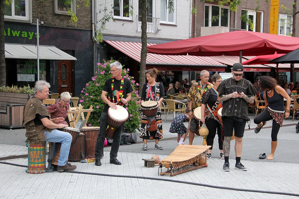 En dat maakte dat de eerste editie van het Glanamundo Wereldfestival in Geleen bij de start van de zomervakanties precies die sfeer kreeg die je er vooraf van verwachtte: een ontspannen evenement, met goede muziek en lekker eten uit diverse delen van de wereld. Behalve diverse optredende bands en de aanwezige foodtrucks was er ook een kleine markt ingericht met producten uit andere werelddelen. De publieke belangstelling was prima en de bezoekers wisten het aanbod goed te waarderen.