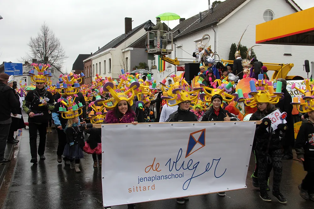 Gelukkig bleef het zondagmiddag op een enkel spatje regen na droog tijdens de Sittardse kinderoptocht. Het publiek was dan ook weer in groten getale op deze kleurrijke en vrolijke stoet afgekomen.