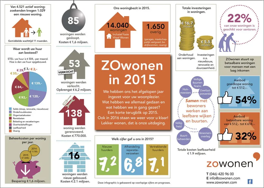 Die cijfers van de woningcorporatie staan in een door ZOwonen gepubliceerde infographic waarin informatie is vervat over het afgelopen jaar. Die is overigens gebaseerd op voorlopige cijfers en prognoses.