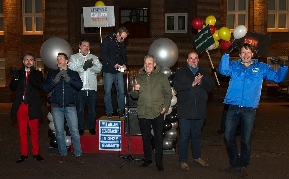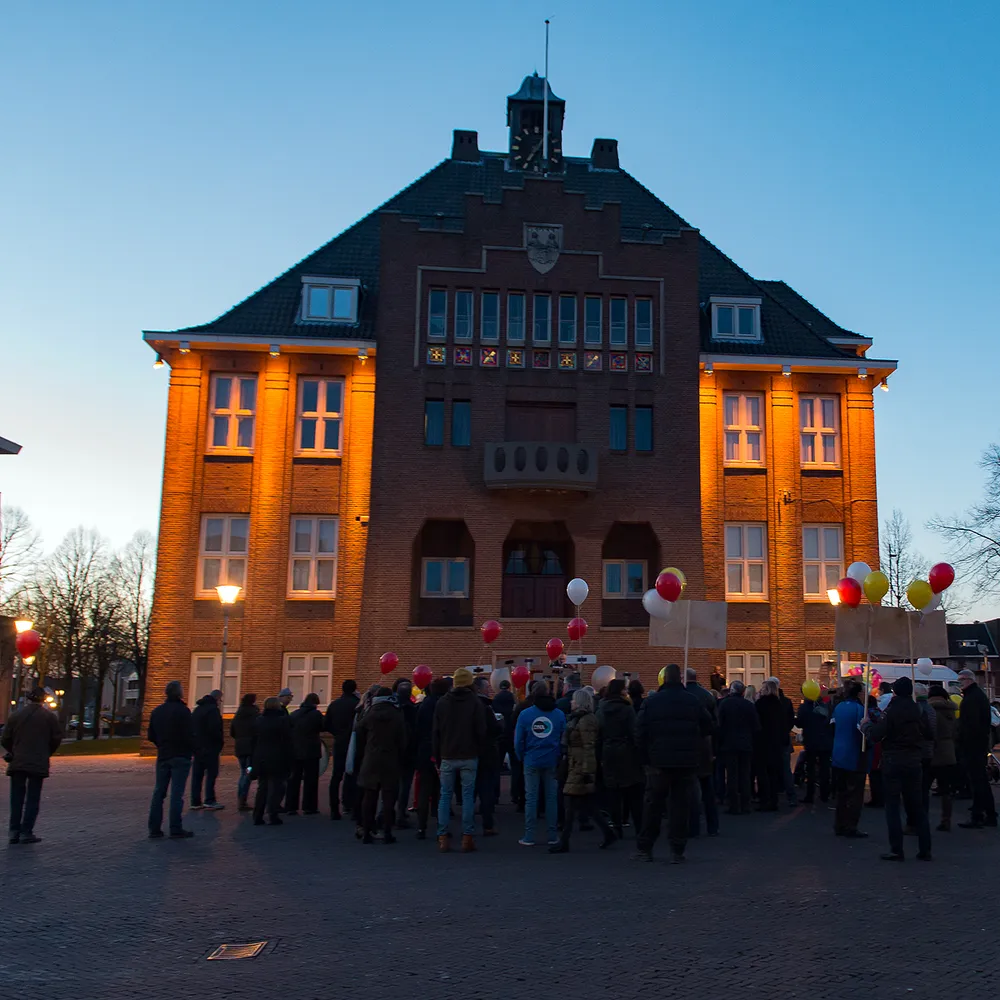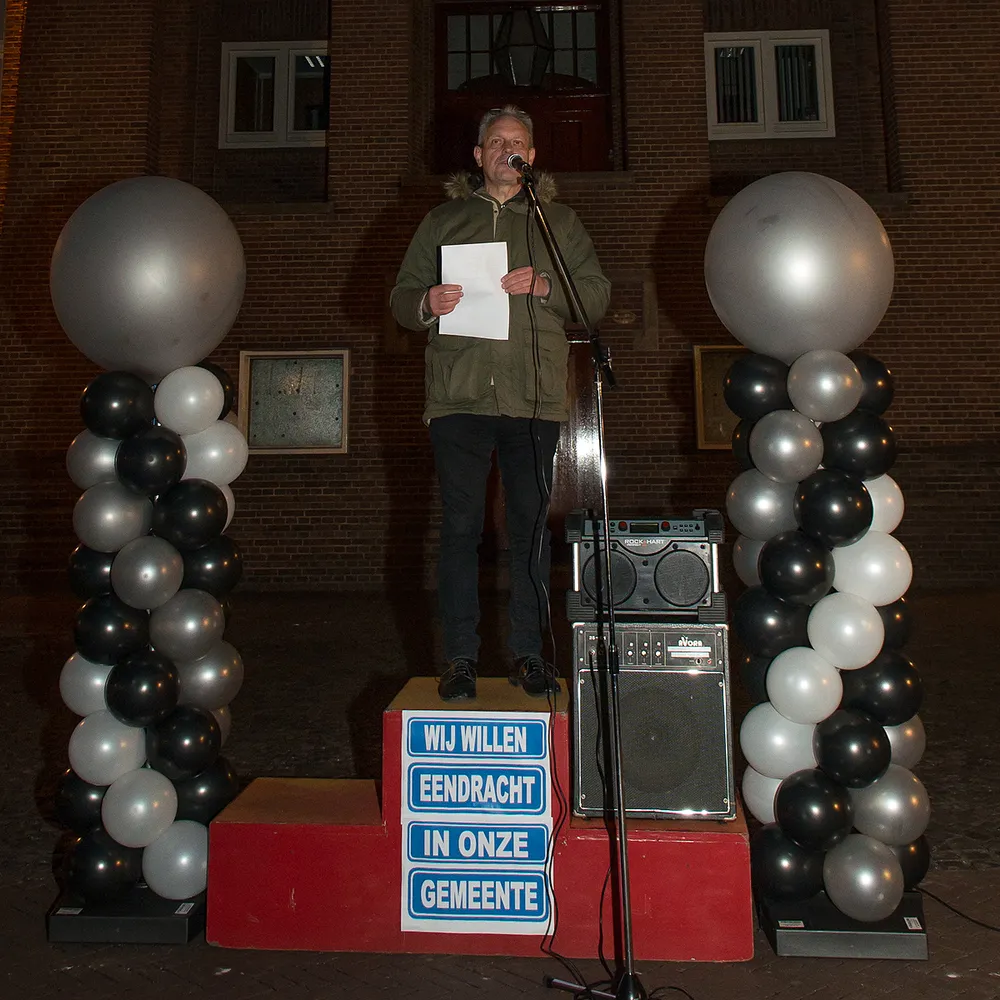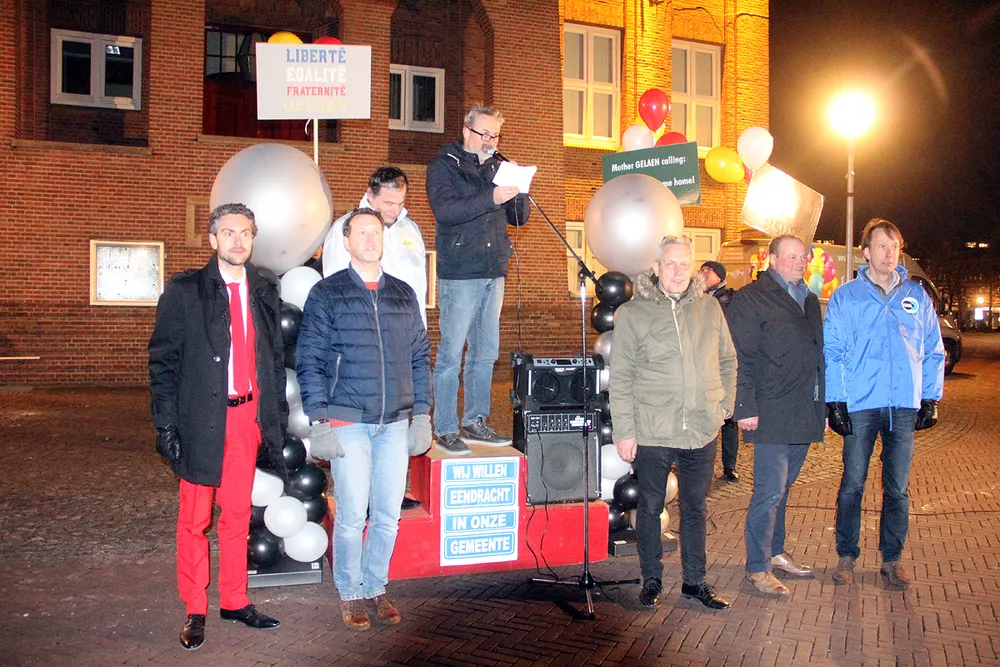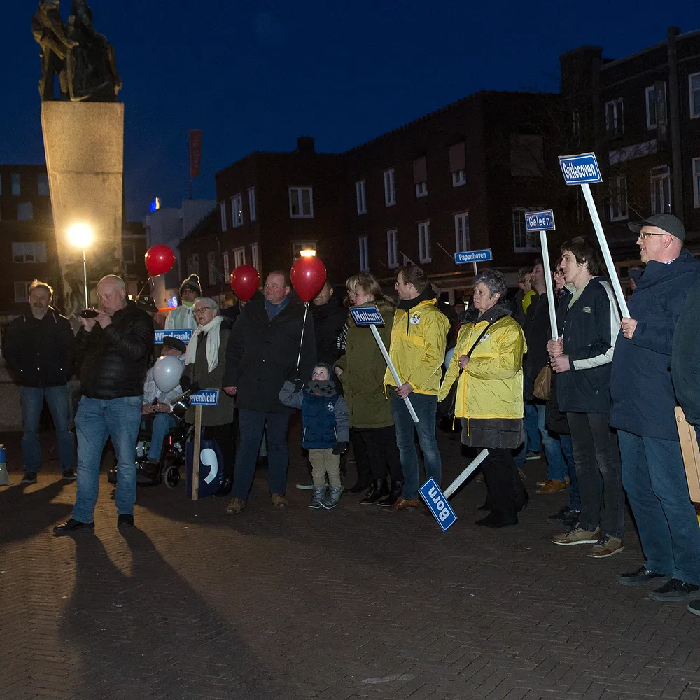 Voor het oude stadhuis in Geleen vond dinsdagavond een manifestatie plaats voor meer trots en eendracht in Sittard-Geleen (en Born).